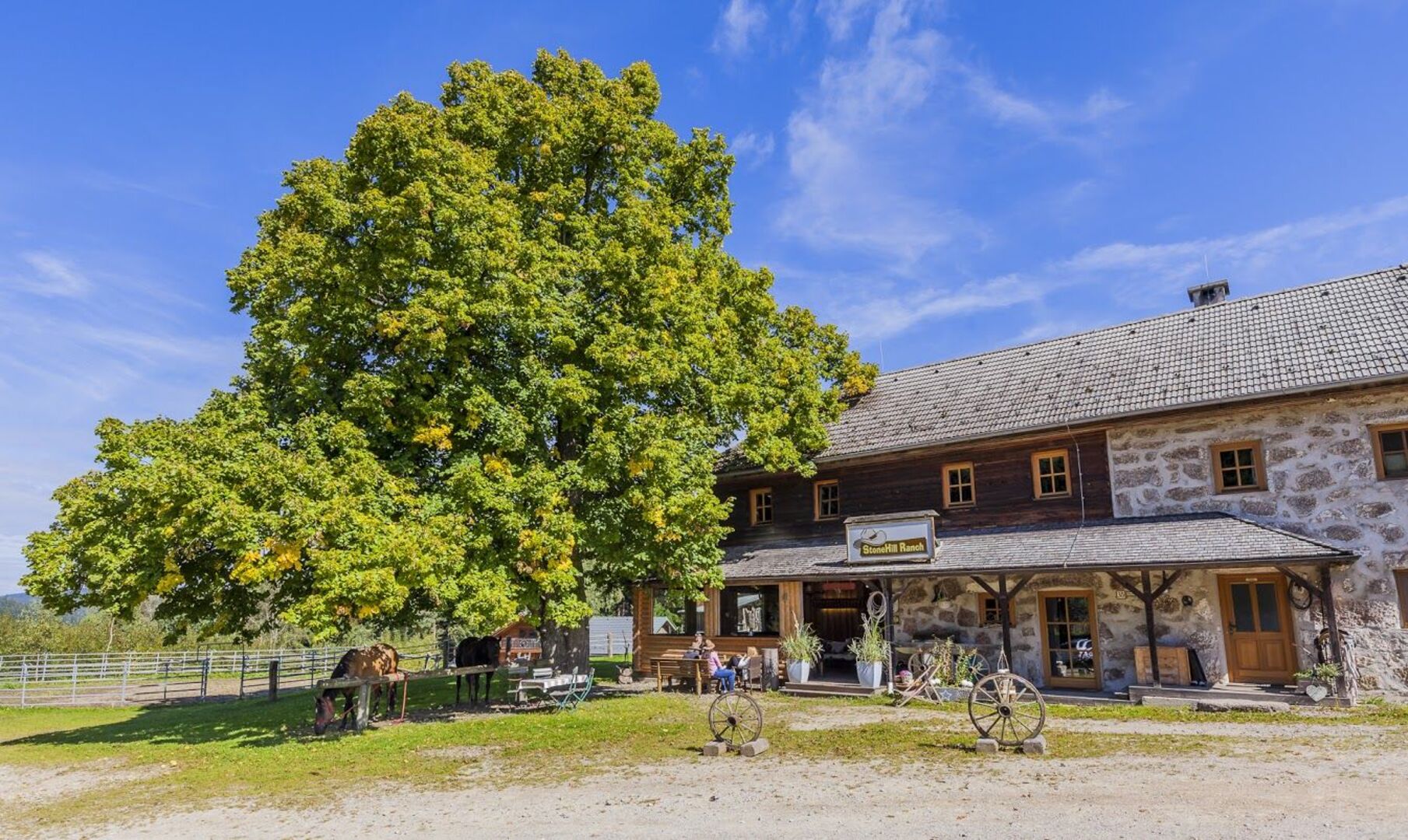 In Königswiesen im Bezirk Freistadt liegt die Stonehill Ranch, ein Mekka für Westernreiter und Naturliebhaber. Auf der Mühlviertler Alm liegen die Blockhütten und laden zum Entspannen oder zum amerikanischen BBQ Grillen ein. Neben den Hütten gibt’s aber auch einen echten Saloon, einen Wild West Store, einen Schwimmteich und natürlich viele Pferdekoppeln. Das Reitwegenetz rund um die Stonehill Ranch umfasst rund 620 Kilometer markierte Wege. Auf dem Trek durch das wilde Mühlviertel gibt es viele Stationen wo man sich, aber auch dem Pferd, eine Ruhepause gönnen kann.