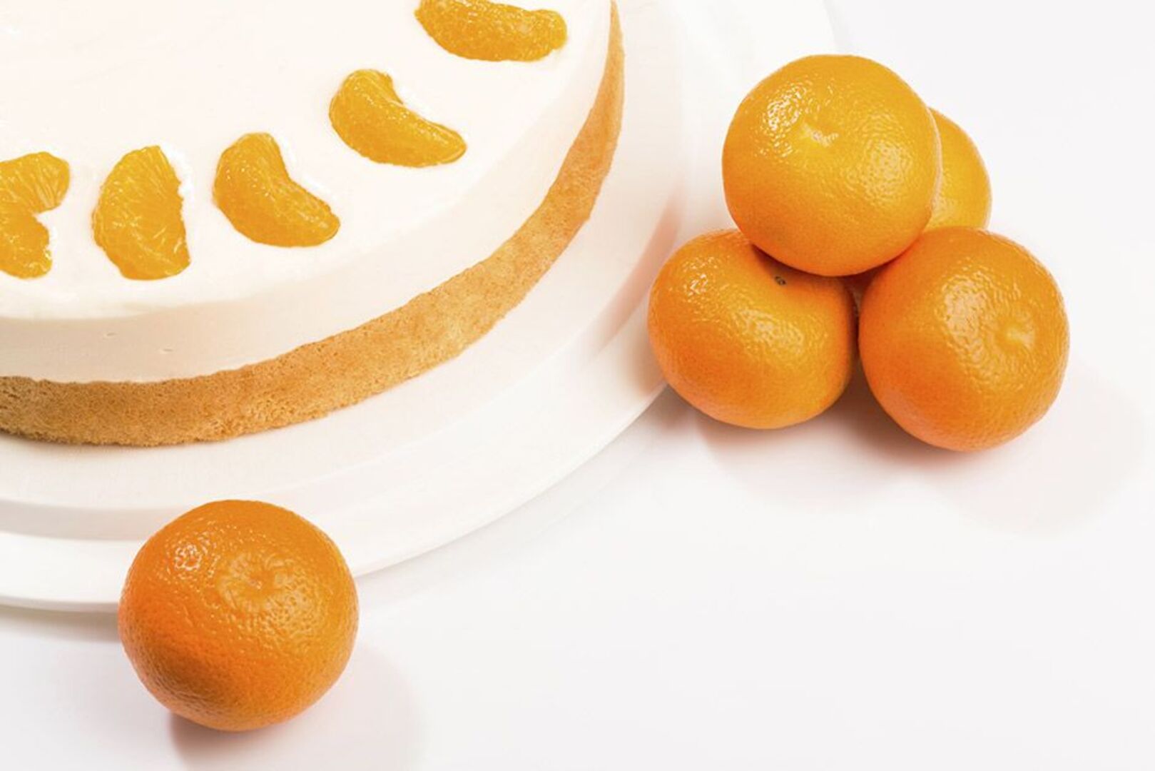 Wie aus der Konditorei präsentiert sich diese fruchtige Schnitte, die auch zur Not mit Mandarinen aus der Dose auskommt. Die Creme wird aus Quimiq gemacht, für den süßen Guss sorgt farblose Gelatine.