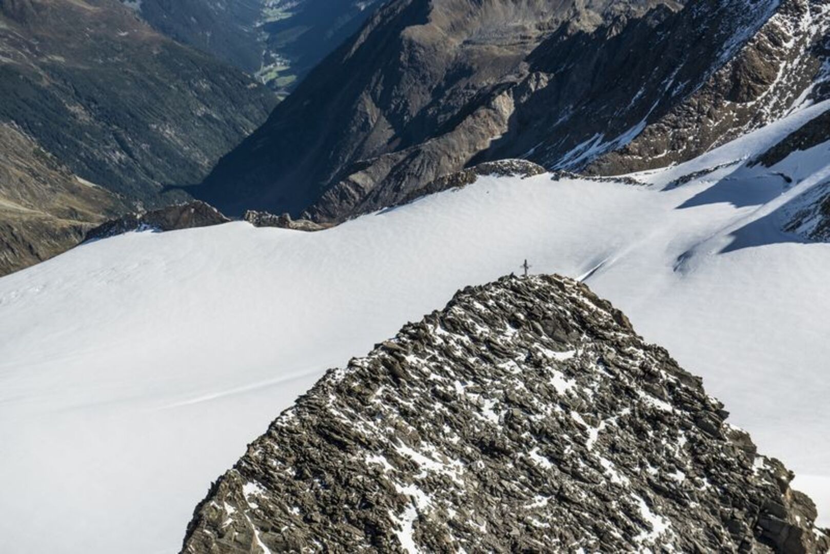 So süß der Name des höchsten Gipfels der Stubaier Alpen klingen mag, so mächtig ist er. Das Zuckerhütl trägt seinen Namen von der lange währenden, weißen Haube aus Schnee, die den Gipfel seitlich bedeckt. Zur Gänze in Nordtirol gelegen ist er auch von der südtirolerischen Seite her begehbar und stets in alle Richtungen präsent.