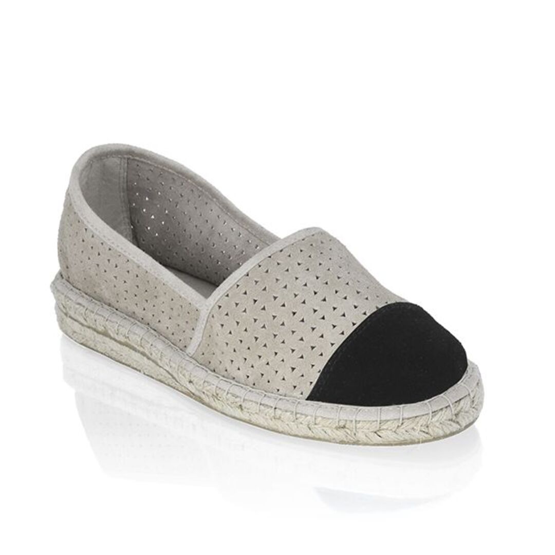 Weiche Espadrilles in Grau/Schwarz mit kleinem Lochmuster von Fraiche. Um ca. € 49,95 (erhältlich bei Humanic)