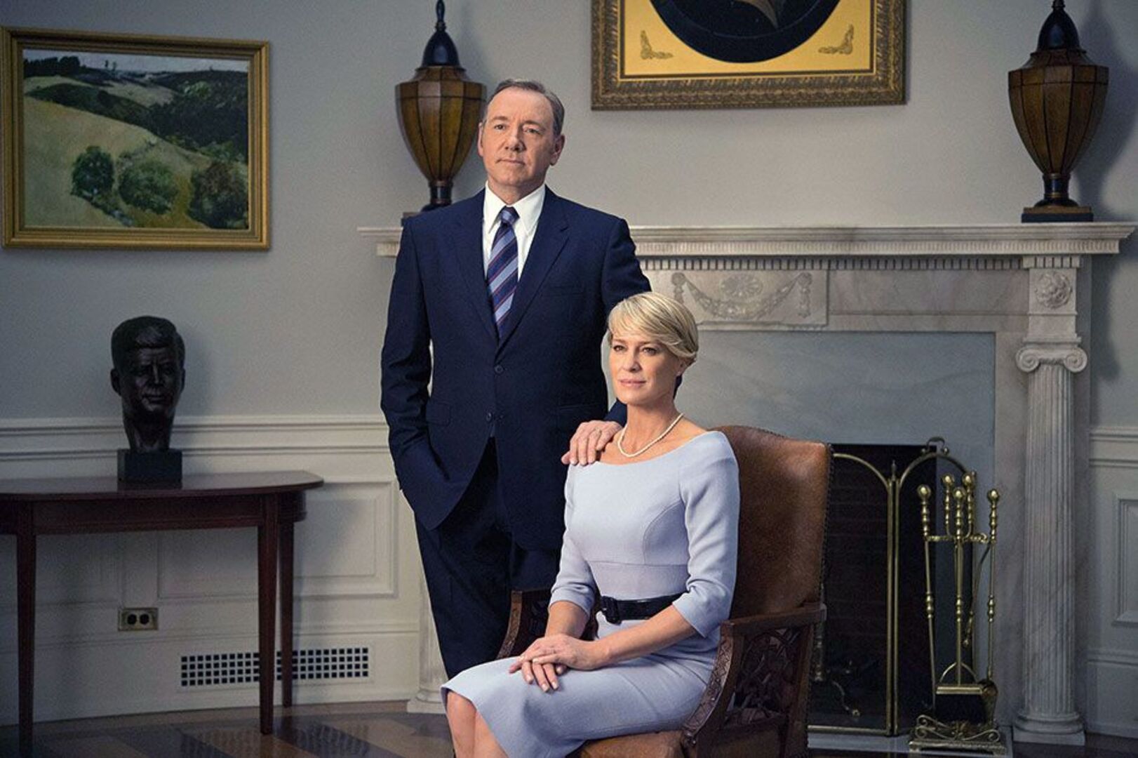 Sie ist eine Erscheinung, kühl, elegant, rundum perfekt: Wenn Robin Wright als Claire Underwood in der Netflix-Erfolgsproduktion „House of Cards“ (in Österreich zu sehen bei Sky Atlantic HD) den Raum betritt, sind alle Augen auf sie gerichtet. Auf immer mörderisch hohen Designer-Stilettos schreitet sie an ihr Ziel, die Haltung angespannt, den Kopf erhoben, völlig ihrer Ausstrahlung bewusst. Die Kleider und Kostüme, die sie trägt, passen wie angegossen. Die Schnitte: klassisch. Die Farben: gedeckt. Kein Bling-Bling, wenn Schmuck, dann kleine Diamantenstecker oder eine kurze Perlenkette. Der freche Pixie ist immer akkurat geschnitten. Hosenanzüge wären zur Kurzhaar-Frisur zu maskulin. Ihre Outfits brauchen keine lauten Farben, ihr Stil funktioniert in Beige, Grau, Weiß, Dunkelblau perfekt. Klassisch, elegant, mit subtiler Erotik. Ein Look, der von Tausenden von Frauen weltweit kopiert wird. Claire Underwood scheint in Sachen Power-Style alles richtig zu machen. Doch wie sieht es in der Realität aus?