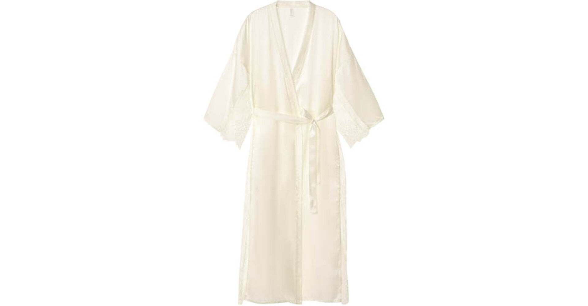 Ideal zum Überziehen ist der Morgenmantel aus der Kollektion. Egal ob bei den letzten Hochzeitsvorbereitungen oder für das Frühstück am nächsten Morgen, der Kimono aus feinstem Seidensatin ist leicht auf der Haut und unglaublich edel. Alle Stücke sind nicht nur wahnsinnig angenehm zu tragen, sondern auch passend zum Anlass, in einem zarten Puderweiß gehalten und mit filigraner Spitze versehen. Dies schafft einen wunderschönen Look, der elegant, verspielt und verführerisch zu gleich ist.