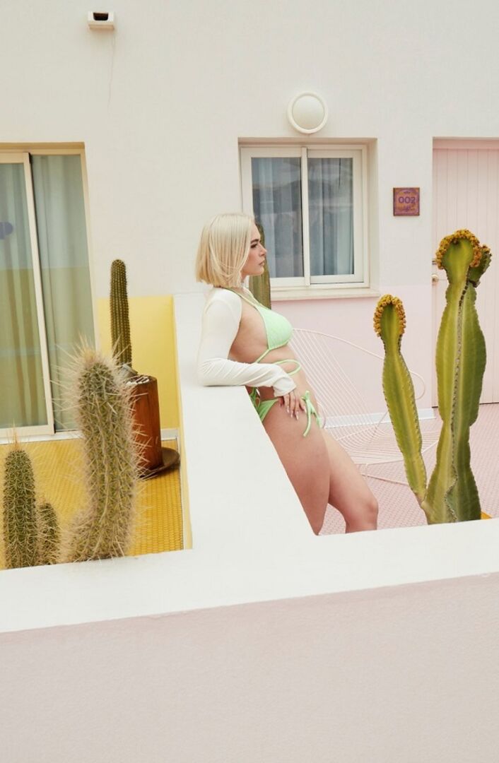 Warum sie wohl kein Statement dazu abgab? Weil sie wusste, dass die Neuigkeiten schon bald offenbart werden. Denn Mathea ist ab sofort das neue Aushängeschild des Unterwäsche-Labels Tezenis. Bereits Anfang März stand sie auf Ibiza, im stylischen Hotel Paradiso, in Bademode vor der Kamera des Top-Fotografen Riccardo Vimercati. Er hatte schon Topmodels wie Toni Garn, Elsa Hose, Coco Rocha und Ashley Graham vor der Linse. Die Chemie zwischen den beiden stimmte wie die Behind-The-Scenes-Bilder versprechen. Und Mathea zeigt sich darin nicht nur im blauen, sondern auch im grünen und orangen BH mit Höschen.