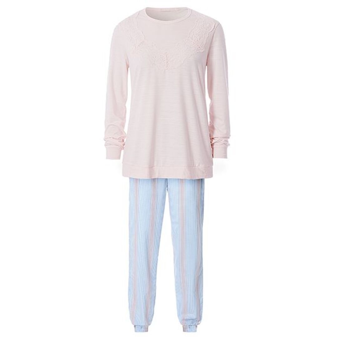 Blassrosa Longsleeve und hellblau karierte Hose von Intimissimi. Set um ca. € 49,90