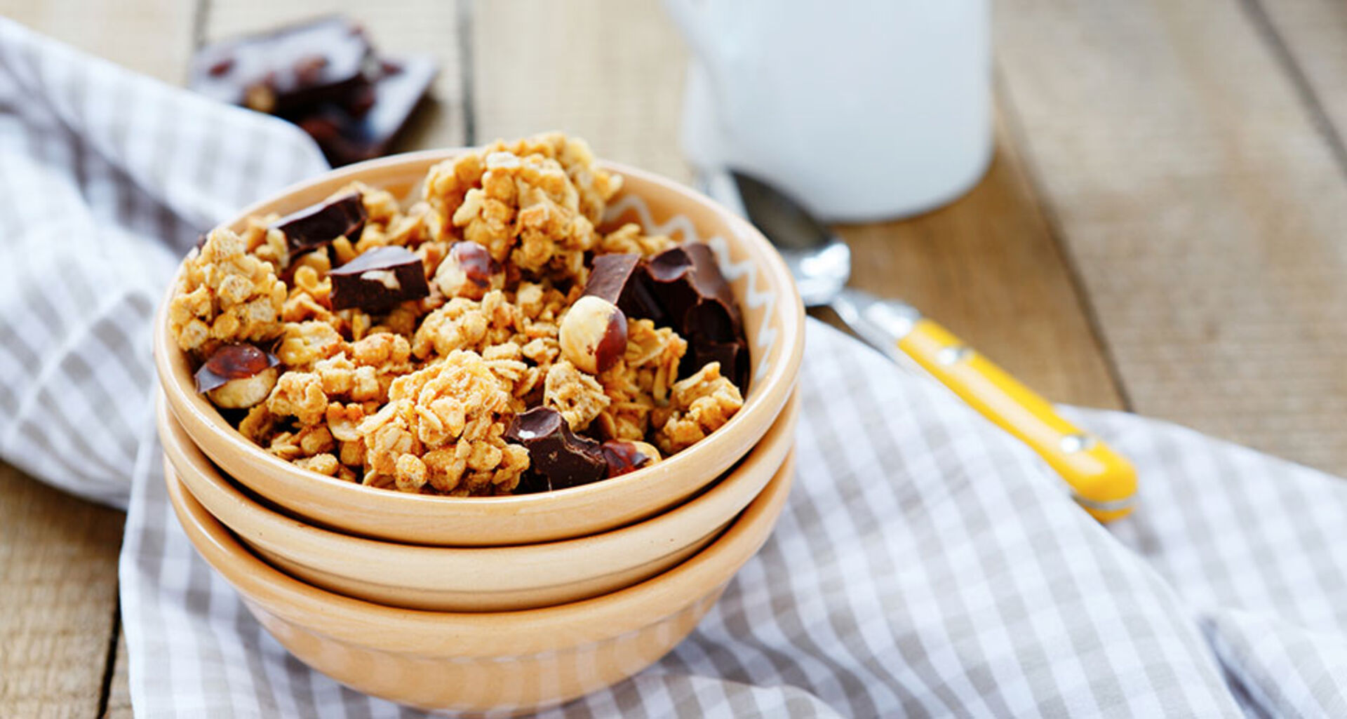 Das beliebte Frühstück ist eine der größten Kalorienfallen überhaupt! Denn in den vermeintlich gesunden Mischungen verstecken sich häufig Zucker und Kalorien. Daher würden wir raten, das Müsli selbst zusammenzumischen. So gibt es keine bösen Überraschungen.