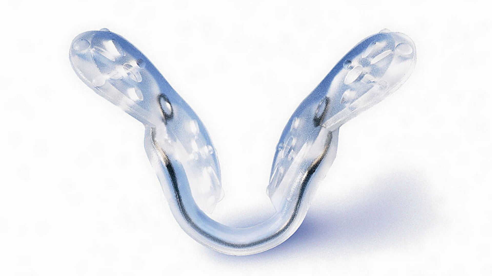 sogenannten Intro“, erklärt Thomas Lang, Geschäftsführer von Velumount. „Dabei verhindert die Spange das Verschließen des Luftkanals hinter dem Gaumenzäpfchen und sorgt so für einen widerstandsarmen Luftdurchlass im Schlaf.“