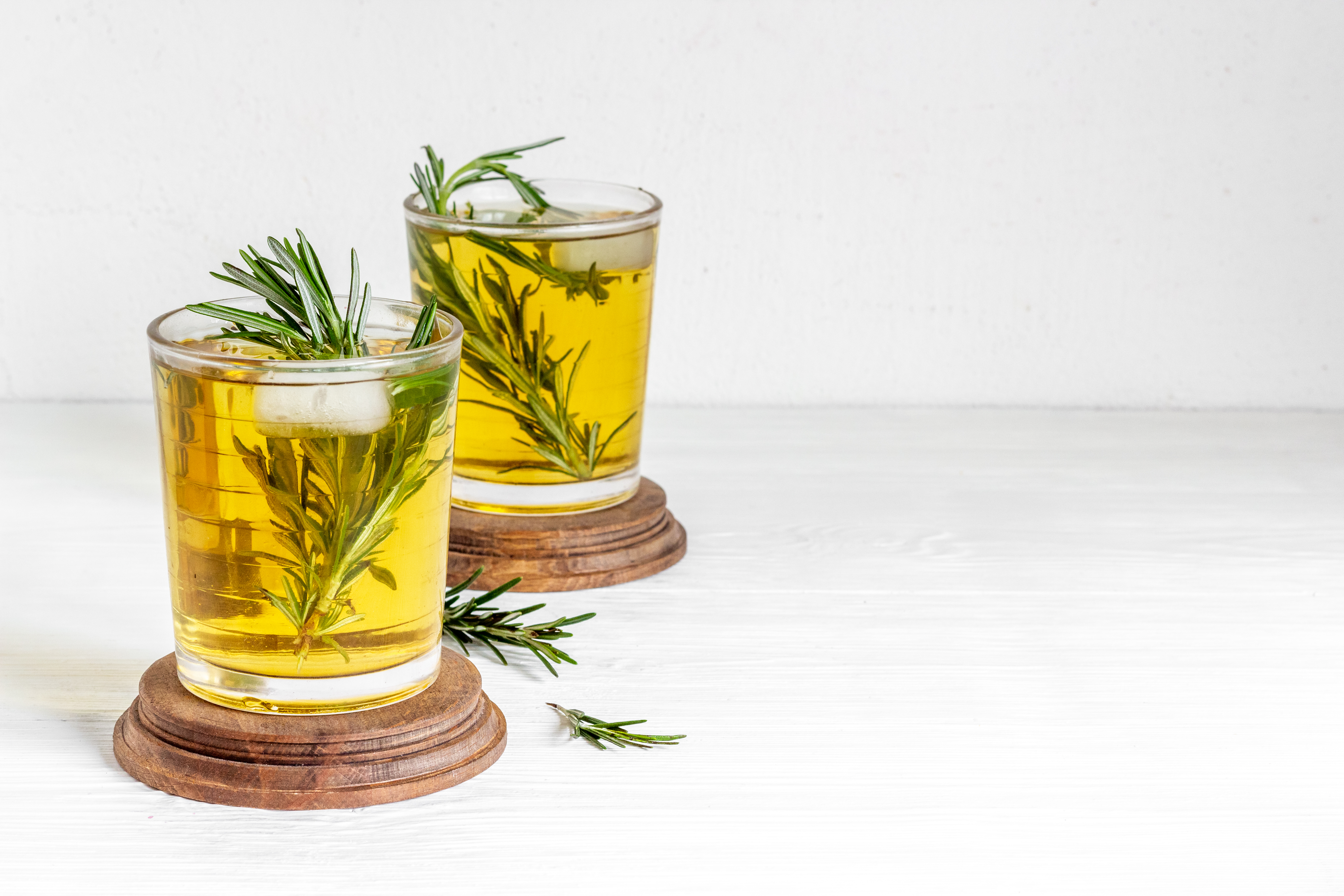 Dieser sommerliche Eistee besticht durch eine mediterrane Kombination aus Limetten, Rosmarin und Thymian. Dafür zunächst zwei Limetten waschen und in Scheiben schneiden. Vier Esslöffel Kräutertee gemeinsam mit den Limettenscheiben, vier Zweigen Rosmarin und vier Zweigen Thymian in einen Topf mit 750 ml Wasser geben und zum Kochen bringen. Danach etwa 30 Gramm Kokosblütenzucker beimengen. Bei niedriger Hitze etwa 15 Minuten köcheln lassen und anschließend durch ein Sieb abgießen. Nun den Kräuter-Eistee für einige Zeit in den Kühlschrank stellen. Vor dem Servieren das Getränk mit etwas Limettensaft und Mineralwasser aufgießen und mit Eiswürfeln genießen.
