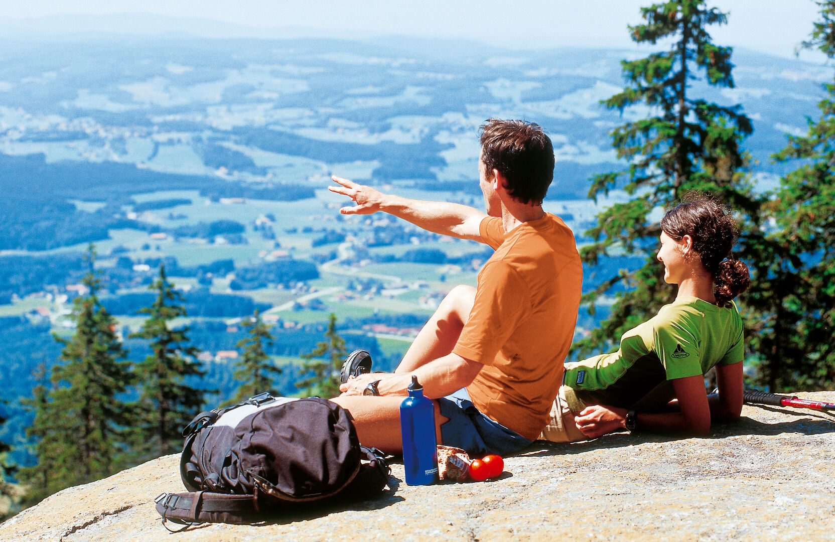 Einen Ausblick der besonderen Art kann man im Böhmerwald bei Oberschwarzenberg im Mühlviertel genießen. Auf den riesigen Granitblöcken des Steinernen Meers, die zu Urzeiten aufgetürmt wurden, lässt es sich großartig speisen. Neben Fingerfood & Co sollte man aber vor allem das Panorama genießen. Über weitläufige Felder mit steinernen Blockmeeren hinweg erschließt sich der Blick über das größte zusammenhängende Waldgebiet Europas und die sanften, grünen Hügel des Mühlviertels.