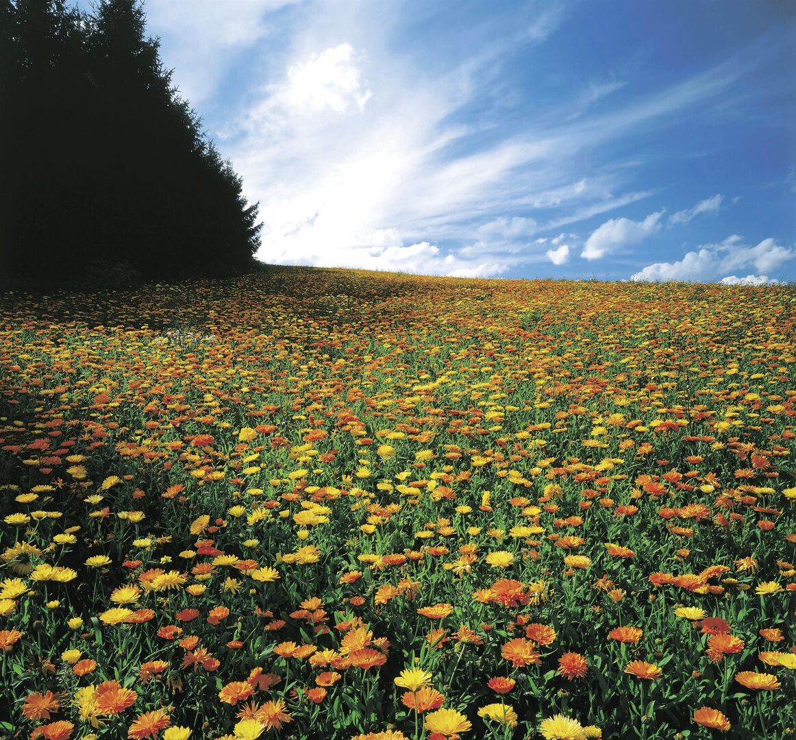 In einem wahren Blütenmeer kann man rund um Aspach und Alberndorf in der Riedmark dinieren. Die weitläufigen Ringelblumenfelder bieten eine atemberaubende Kulisse für jedes Picknick. Die schöne Pflanze wird nicht nur wegen ihrer leuchtend orangen Blüten sehr geschätzt, sie wird auch gerne in der Naturheilkunde verwendet. Dort wird sie bei Verdauungsproblemen und Hautentzündungen angewandt.