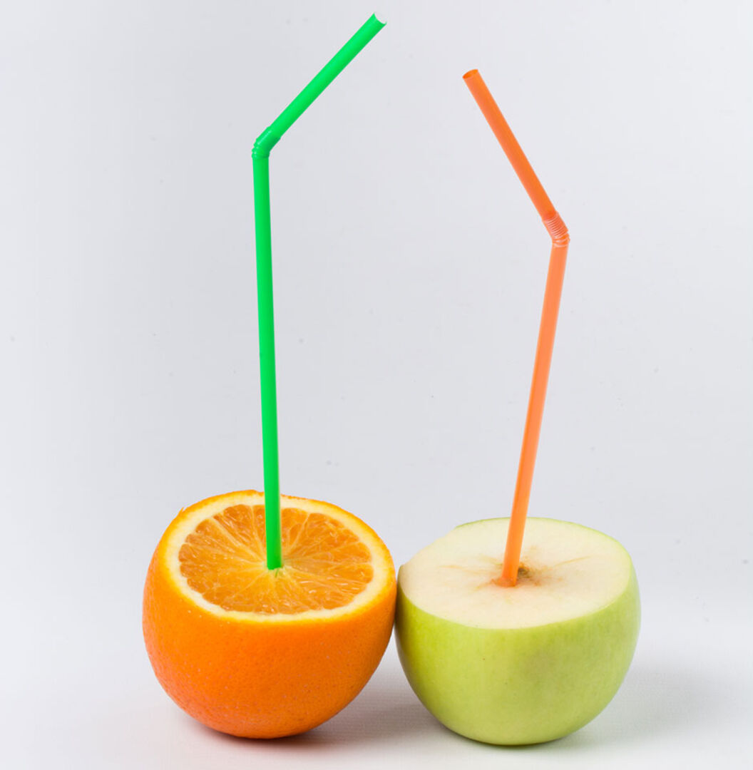 An den Strohhalmen können Trauben, Zwetschken, aber auch größere Früchte wie Äpfel und Orangen angebracht werden. Ihr Kind wird es lieben!