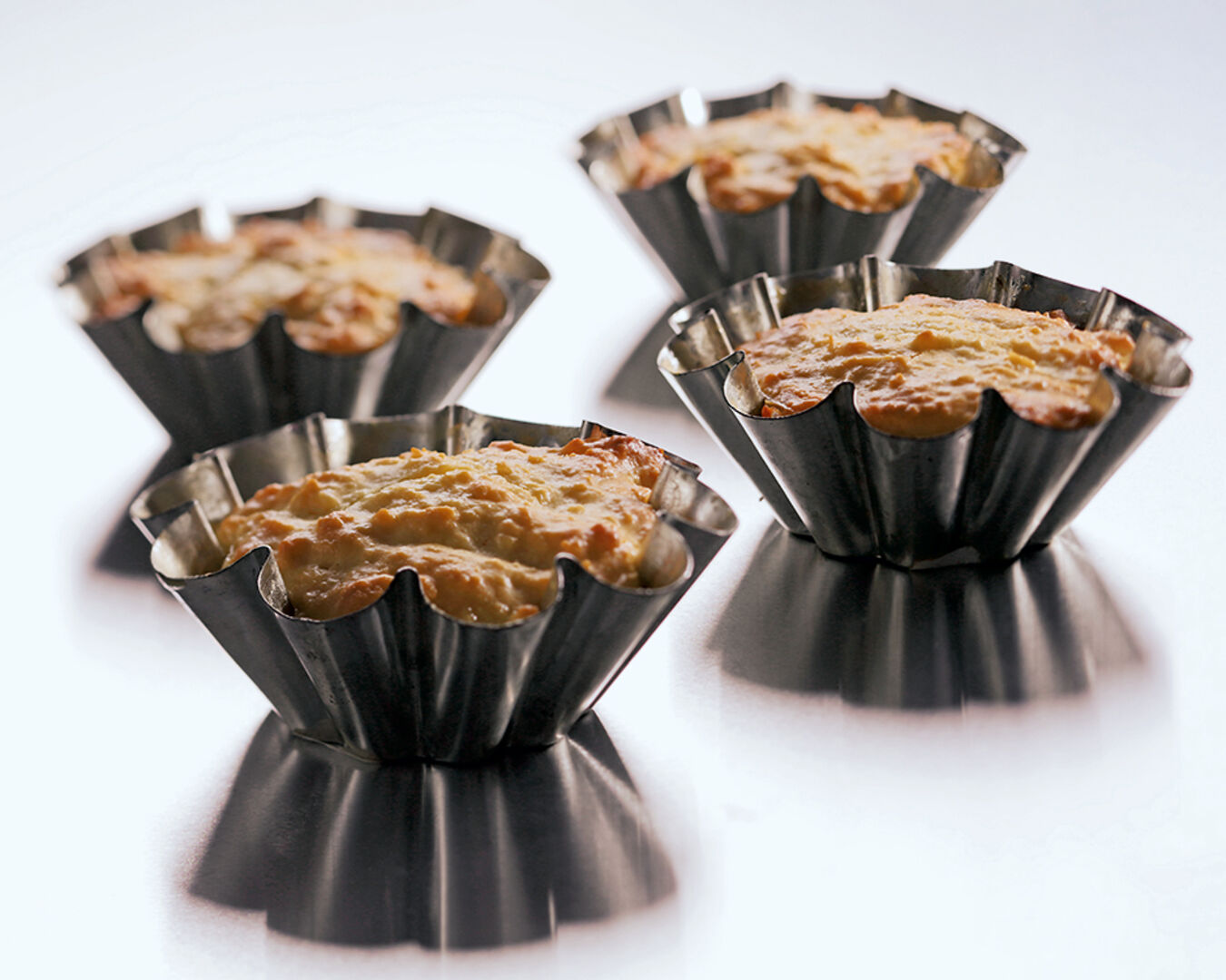 Marillen: Den Backofen auf 160 Grad vorheizen. Butter, Zucker und Wasser in einem Topf bei mittlerer Temperatur unter Rühren erhitzen, bis die Butter schmilzt und die Masse karamellisiert. Die Marillen dazugeben und 2 Minuten unter Rühren karamellisieren lassen. Die Marillen und etwas von dem karamellisierten Saft auf 6 ausgebutterte, beschichtete Muffin-Förmchen verteilen. Den restlichen Sirup zum Anrichten beiseitestellen.