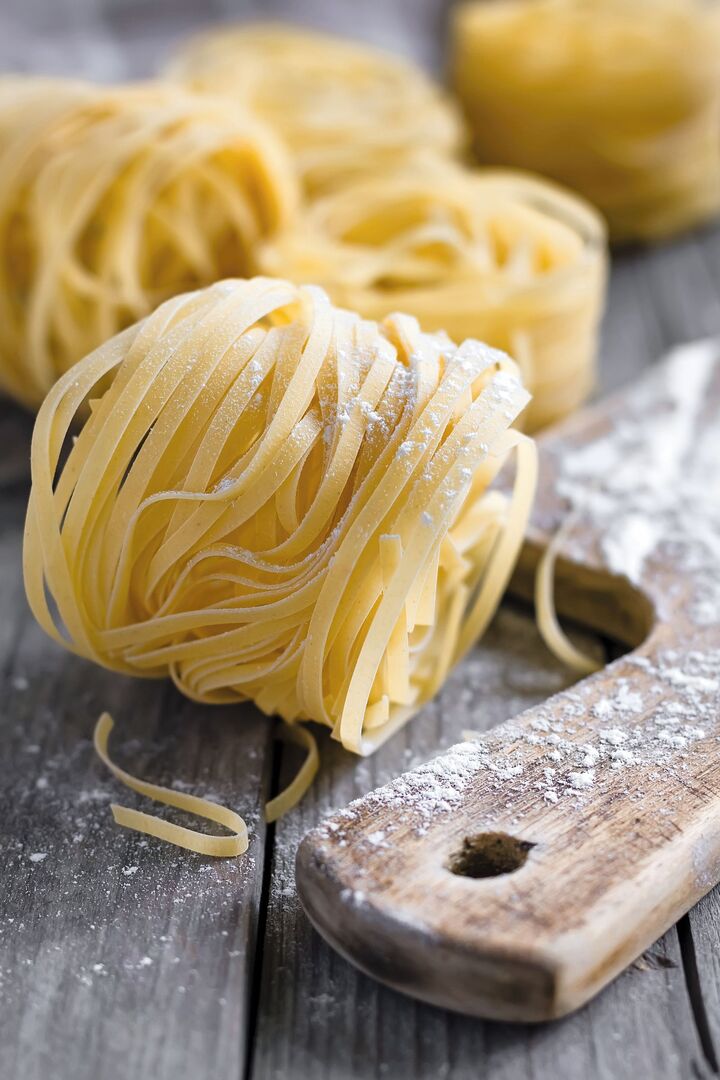 Die Linguine in reichlich gut gesalzenem Wasser bissfest kochen. Abgießen und etwas von dem Kochwasser beiseitestellen. Die Linguine mit einigen Spritzern Olivenöl, dem geriebenen Parmesan und so viel Kochwasser mischen, bis sie eine leicht cremige Konsistenz haben. Anschließend das Ragout zusammen mit der Pasta anrichten – und fertig!