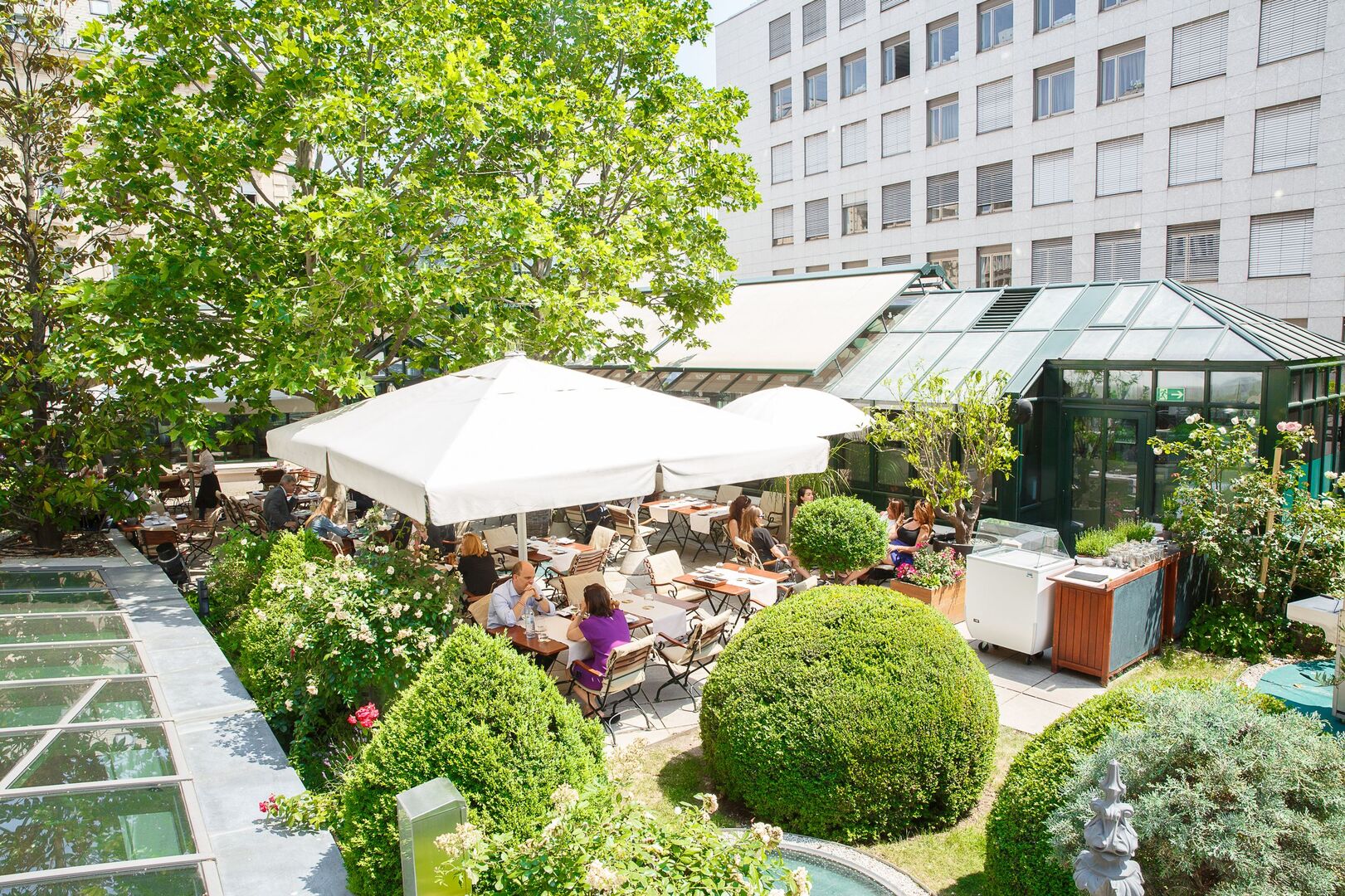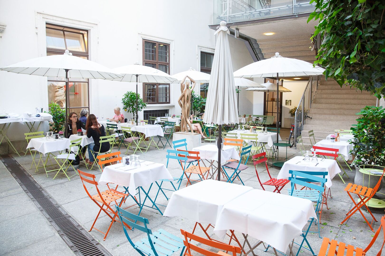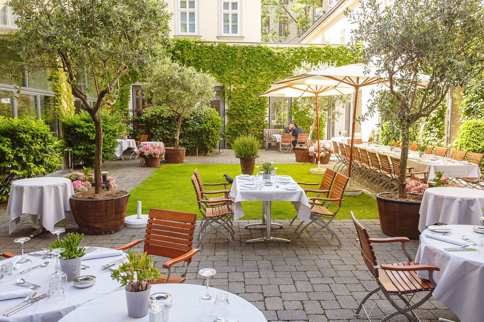 Klein, fein, französisch: Im charmanten Innenhof des Beaulieu im Palais Ferstl kann man französische Sommertage und laue Abende im Herzen von Wien genießen.