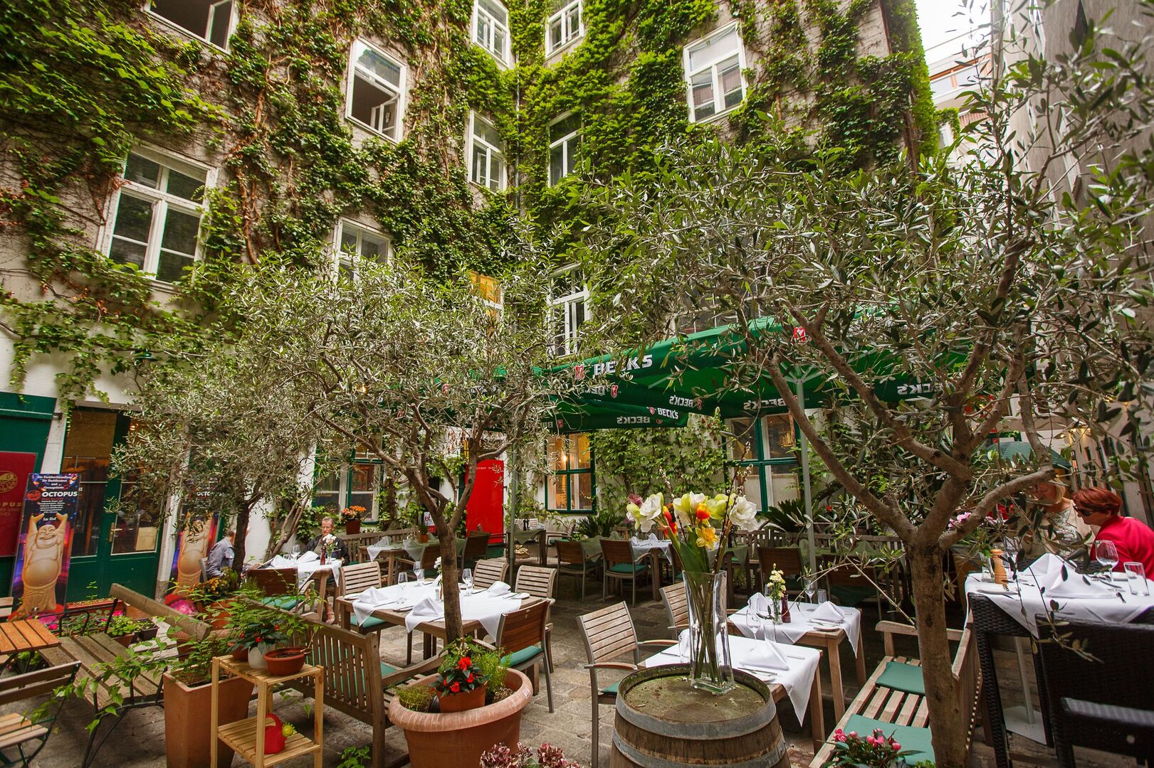 Das Restaurant Collio im Hotel Das Triest (1040, Wiedener Hauptstraße 12) verfügt über einen schönen, grünen Garten, wo auch NIcht-Hotelgäste herzlich bewirtet werden.
