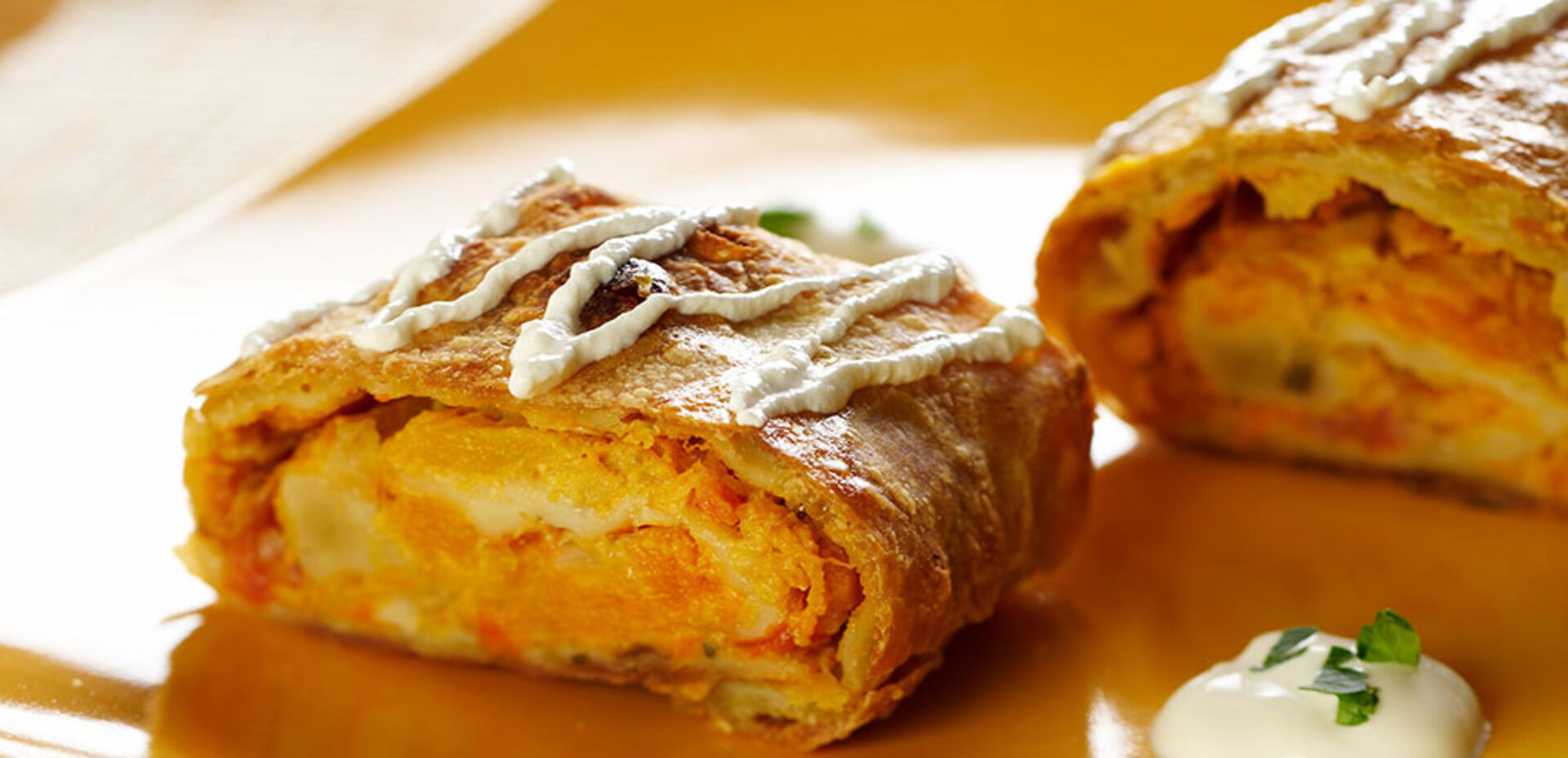 Strudelteig gefüllt mit feinstem Hokkaidokürbis klingt nicht nur besonders schmackhaft, sondern schmeckt aus exquisit.