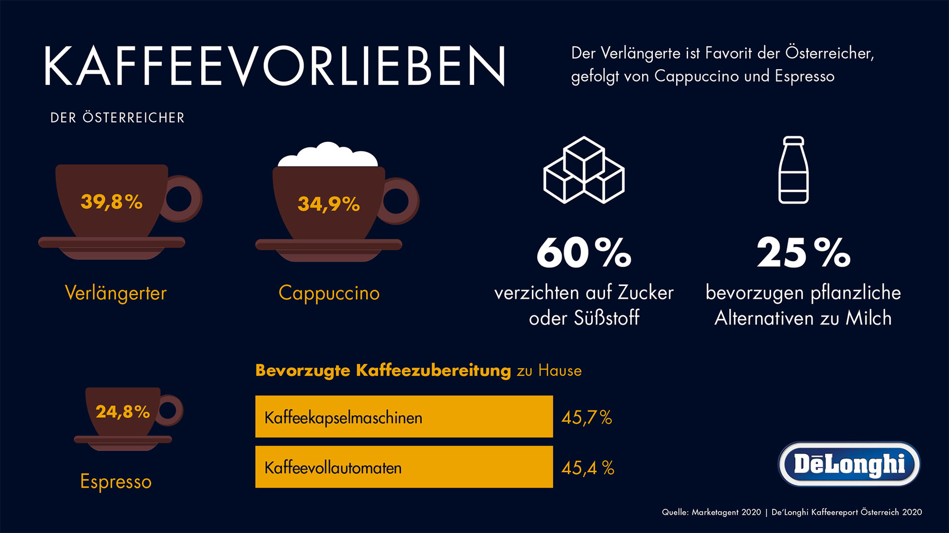Quellen: Statista 2020, De'Longhi/marketagent 2020, De'Longhi/Kaffeereport 2020