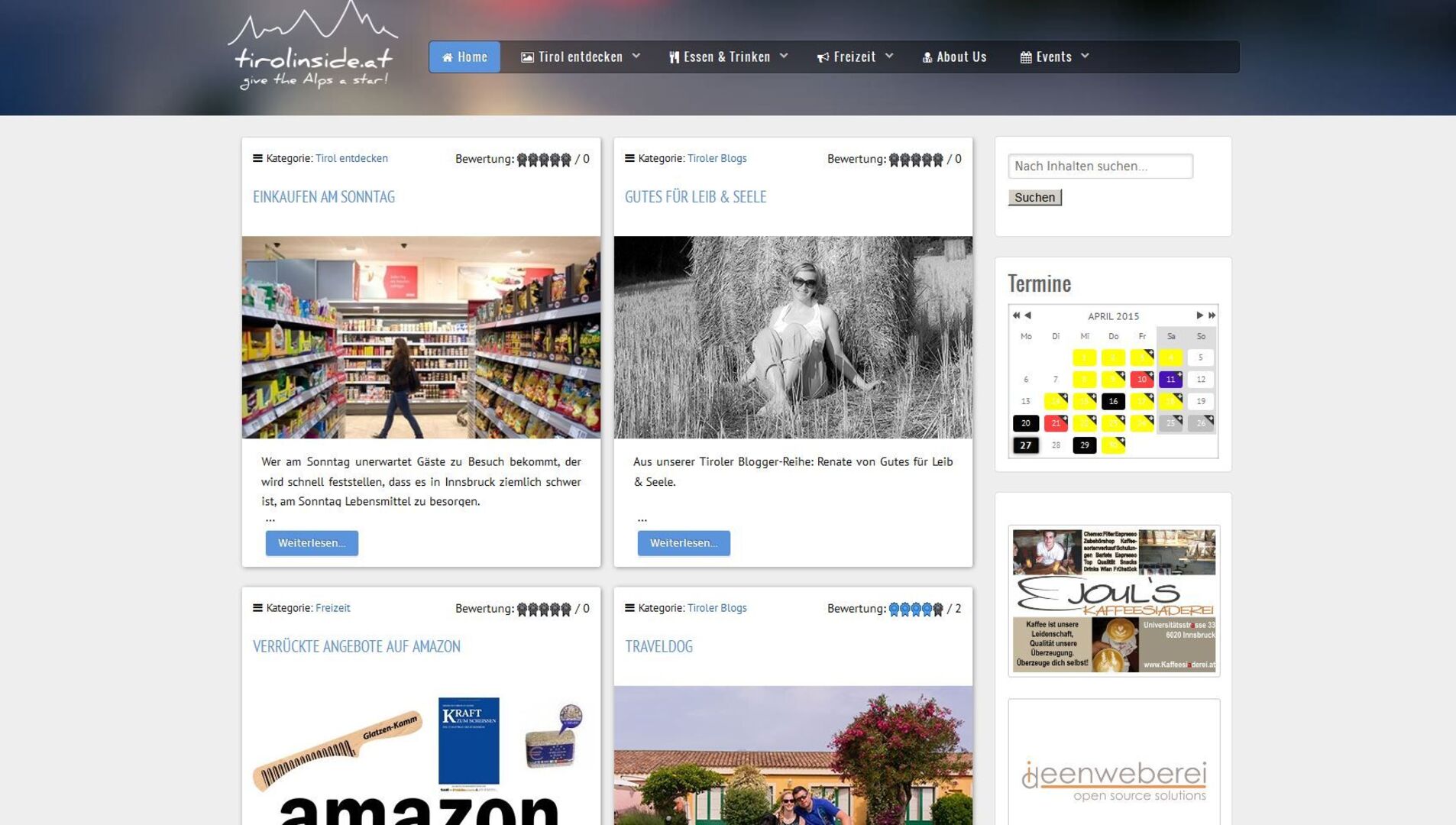 Restaurantbesuche zum Beispiel bezahle er selbst, um unangemeldet und unbeeinflusst testen zu können. Werbung in Form von Anzeigen oder Gutschein-Verlosungen sei jedoch willkommen. 6000 UC monatlich hat der Blog momentan. Leben kann Seelos von den zwei Blogeinträgen pro Woche nicht. Er sehe das Schreiben als Hobby, erzählt der Tiroler. „Tirolinside wurde vor einem Jahr gegründet, weil wir eine Übersicht über Events, Lokale, Freizeittipps in Tirol vermisst haben. Nebenbei dient die Seite als Netzwerk für Tiroler Blogger. Jede Woche wird ein Kollege vorgestellt.“