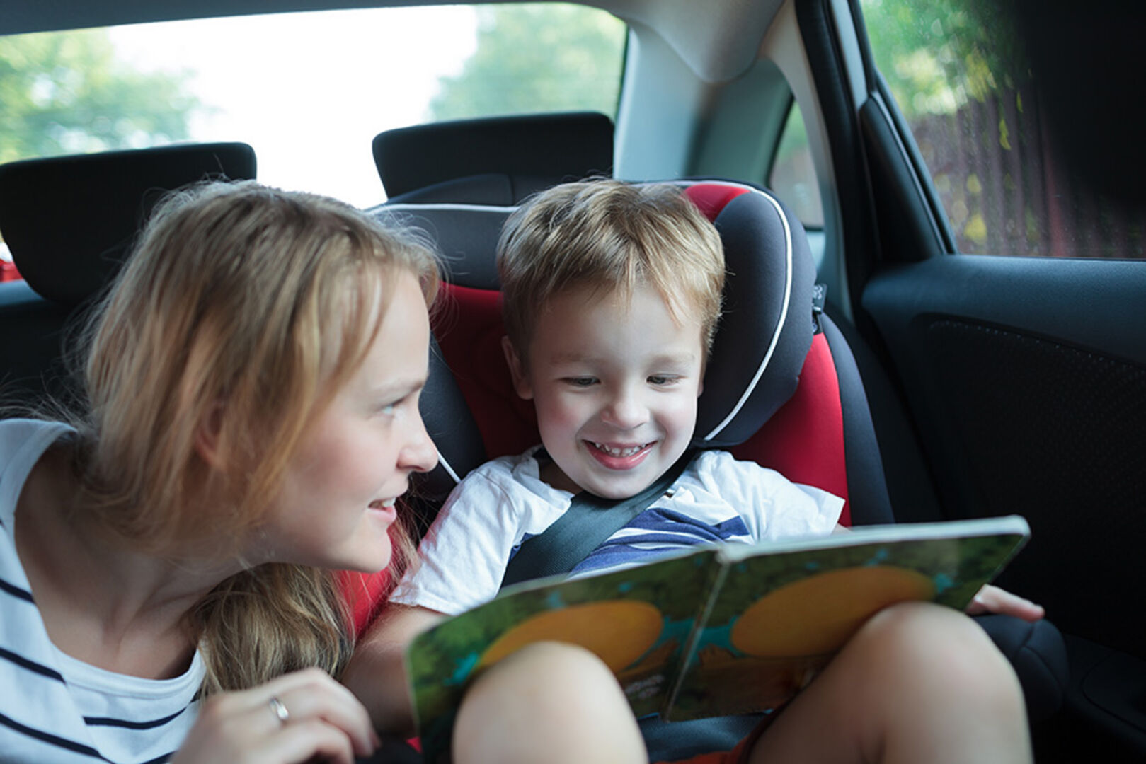 Hörbücher und Kinderfilme ziehen die Kinder in ihren Bann und können sie sogar für mehrere Stunden von der Langeweile im Auto ablenken. Da die Eltern die Geschichten mithören müssen, ist eine sorgfältige Auswahl zu empfehlen. Viele Lautsprecher können mittlerweile auch im vorderen Bereich des Autos ausgeschalten und nur für Zuhörer auf der Rückbank eingeschalten werden. Größere Kinder sehen die Filme mit Kopfhörern.