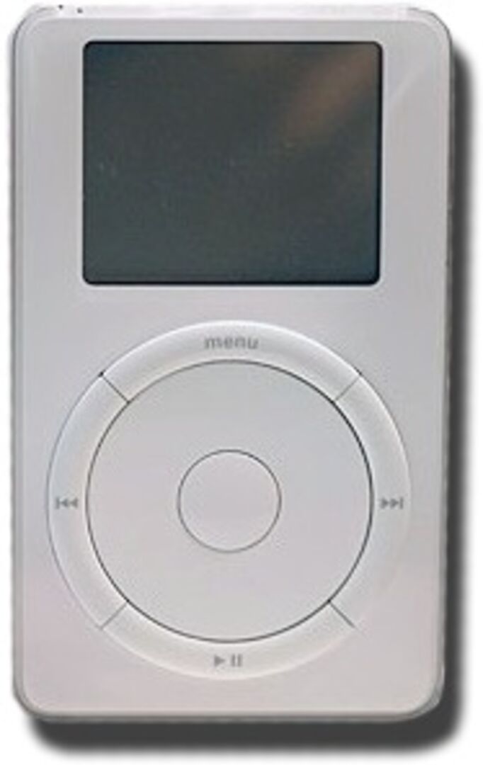 2001 wurde bei Apple die Idee des iPod geboren und sofort umgesetzt. Bereits im Oktober 2001 kam der erste Apple iPod auf den Markt und sorgte sofort für Aufruhr. Das Gerät mit Display, drehbarem Scrollrad und 5GB Speicher (später um 10GB ergänzt) war eine Revolution, denn im inneren werkelte eine Festplatte, die für die gesamte Musikbibliothek Platz bot.