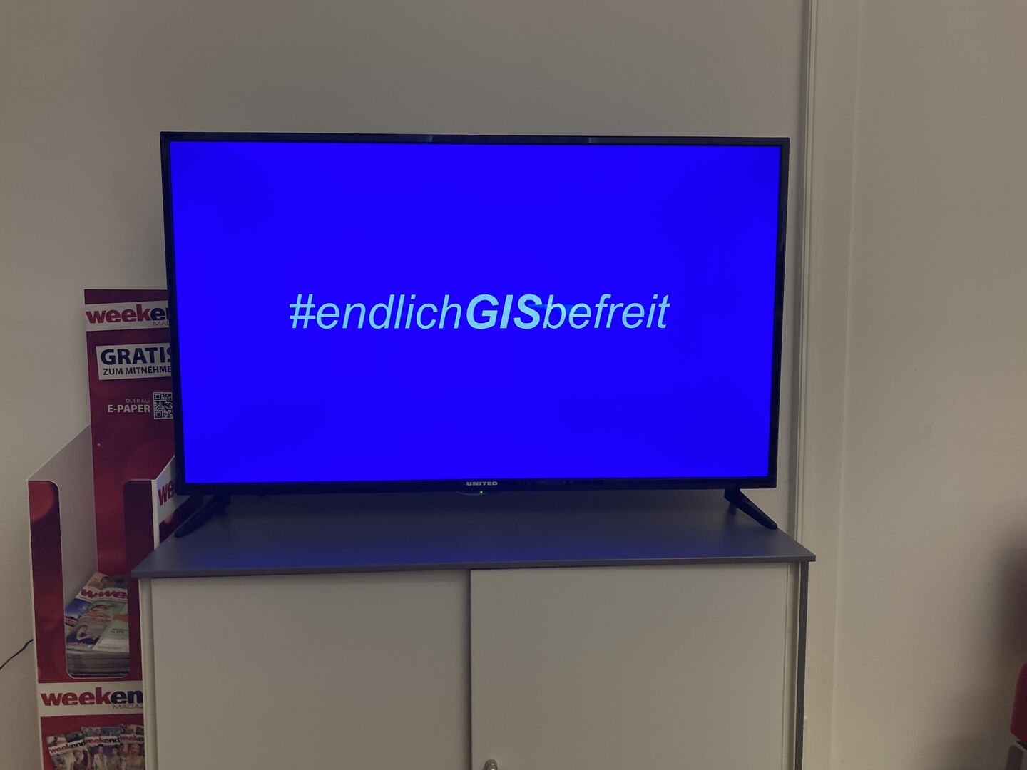 Löblich! Wer trotzdem noch bis Jahresende GIS sparen will, bekommt das Abmeldeformular und eine Bestätigung des Händlers gleich mit. Auch eine Fernbedienung und die Schrauben für die Füße sind dabei. Und wer das Streaming-Gerät nur mit einer Fernbedienung bedienen will, der Fernseher beherrscht HDMI-ARC und CEC. Auch das ist kein Problem. Das Gerät ist unter shop.gisbefreit.com erhältlich, dort gibt es auch noch andere Fernseher und Monitore zu kaufen.