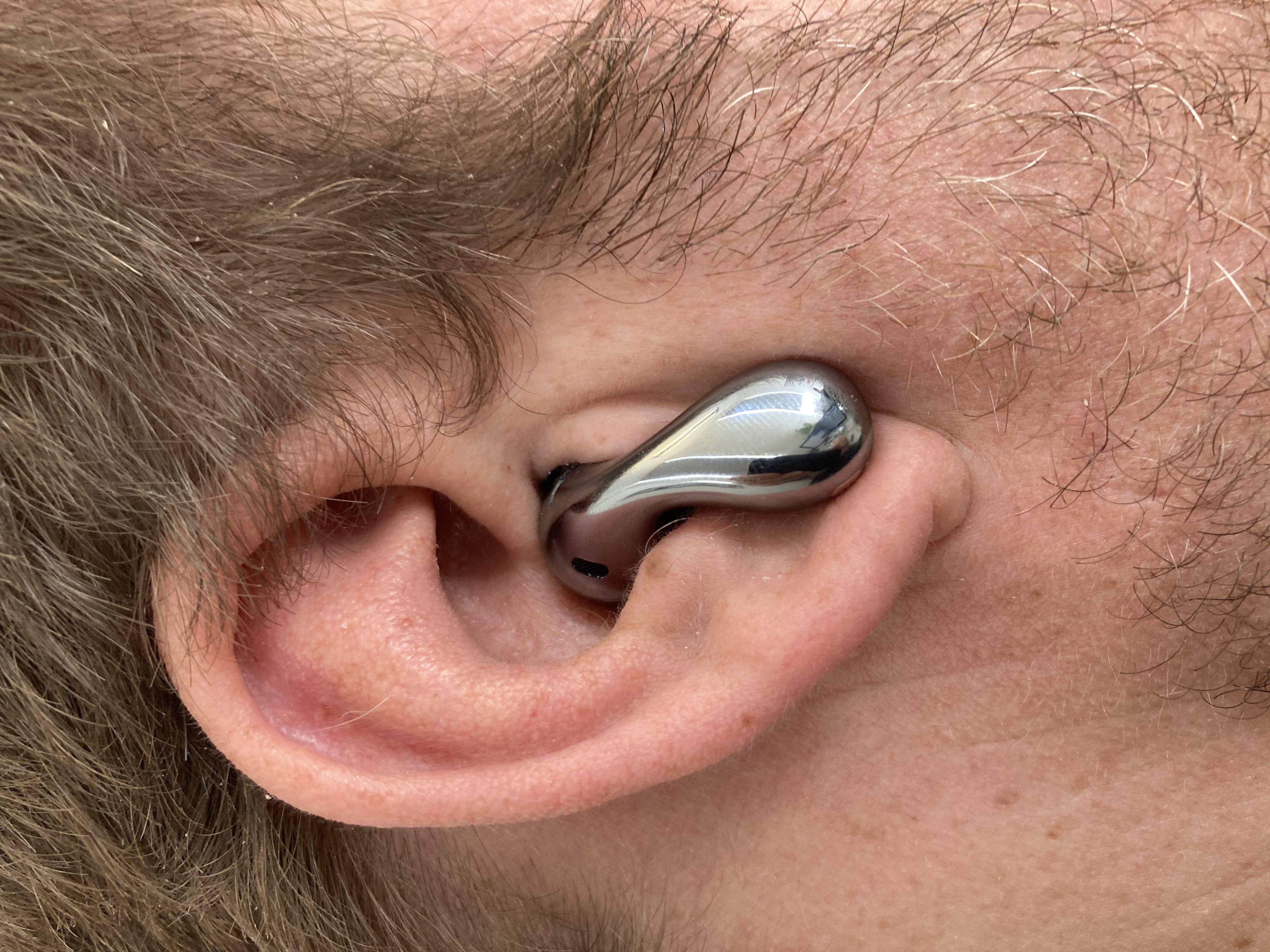 Vorab das Design und das Ladecase sind wirkliche Hingucker. Das Case in Eiform lässt sich leicht öffnen und die Buds in Tropfenform superleicht entnehmen. Und ja - diese Tropfenform ist wirklich außergewöhnlich, denn die FreeBuds 5 werden nur ins Ohr eingehängt. Es sieht dann so aus, als ob einem etwas aus dem Ohr fließt. Sicher nicht jedermanns Sache.