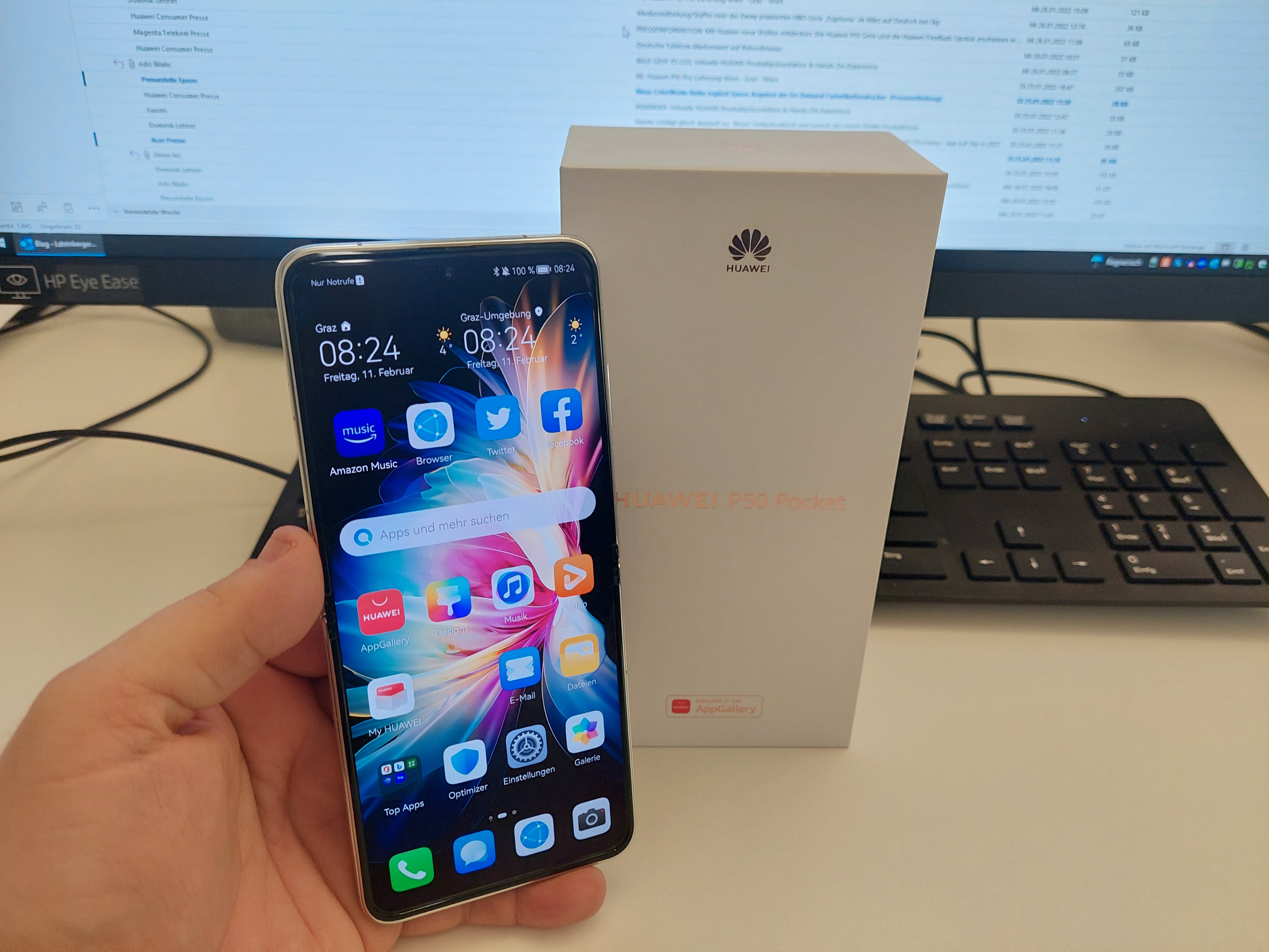 Und ja ich muss es leider ansprechen, das leidige Thema Software: Auch das P50 Pocket wird OHNE Google-Dienste ausgeliefert. Es läuft EMUI 12, basierend auf Android am Gerät. Heißt: Apps für Android funktionieren, brauchen diese Apps jedoch das Google-Play Umfeld verweigern sie teilweise oder ganz den Dienst. Huaweis AppGallery und Petal Search werden aber immer besser und die Chinesen buttern Millionen in die Akquise von Softwareentwicklern, die für das Huawei Ökosystem entwickeln. Langfristig will man damit die Nummer drei hinter Android und Apple werden.