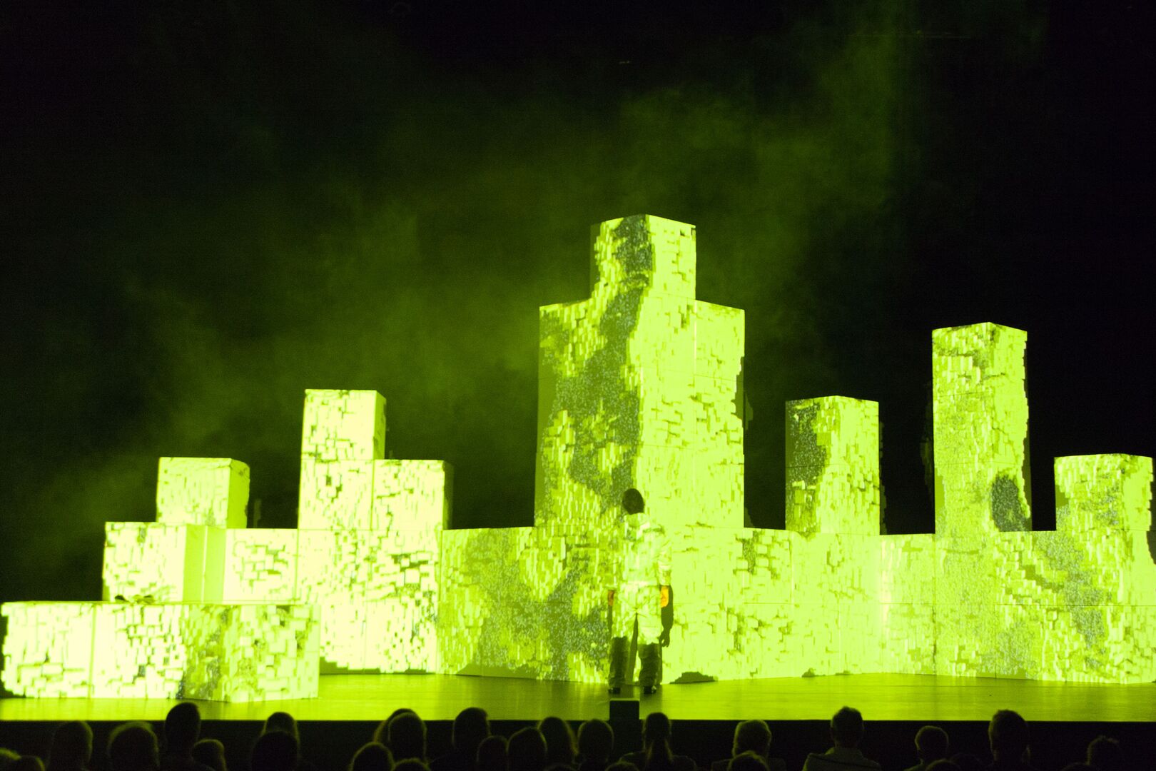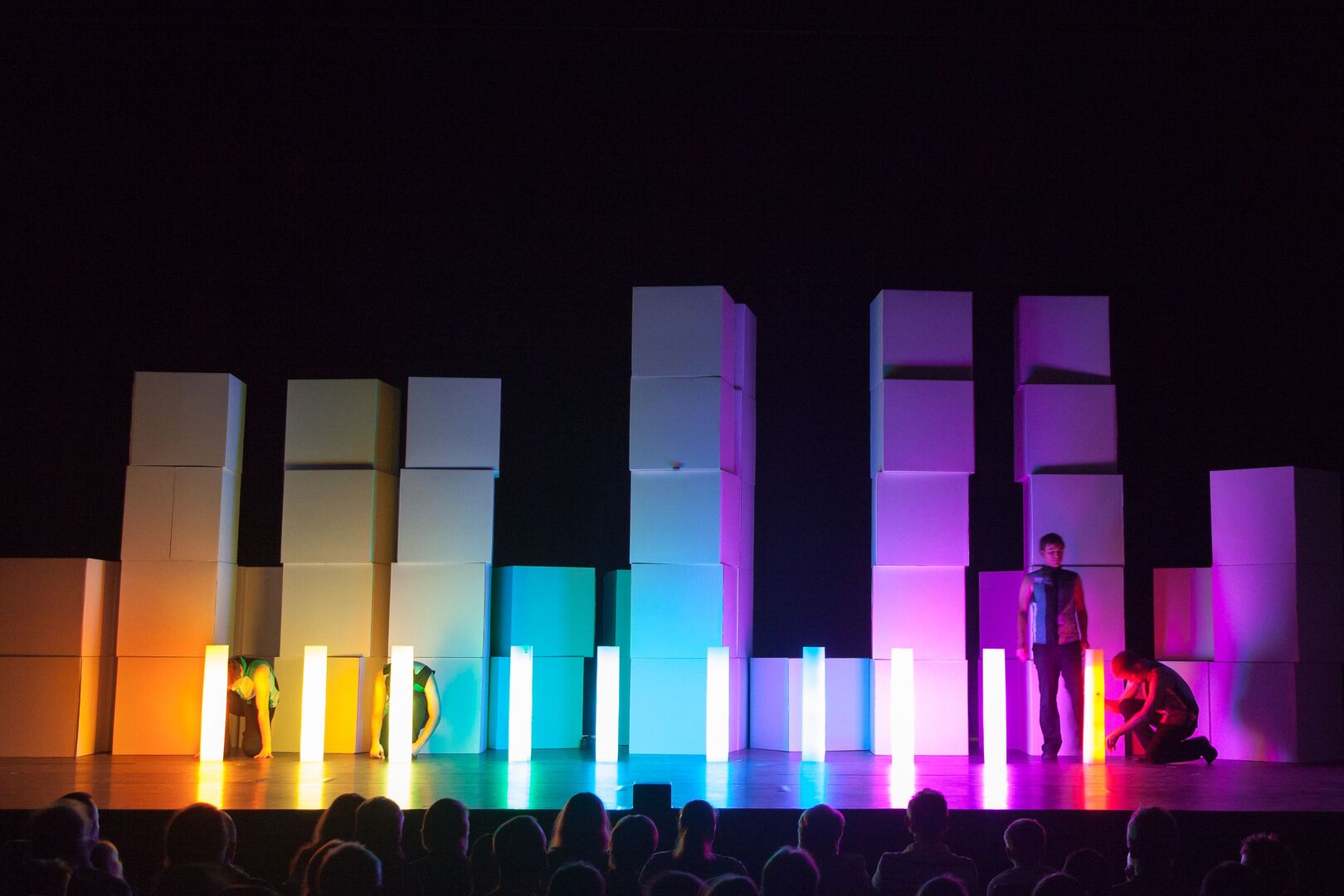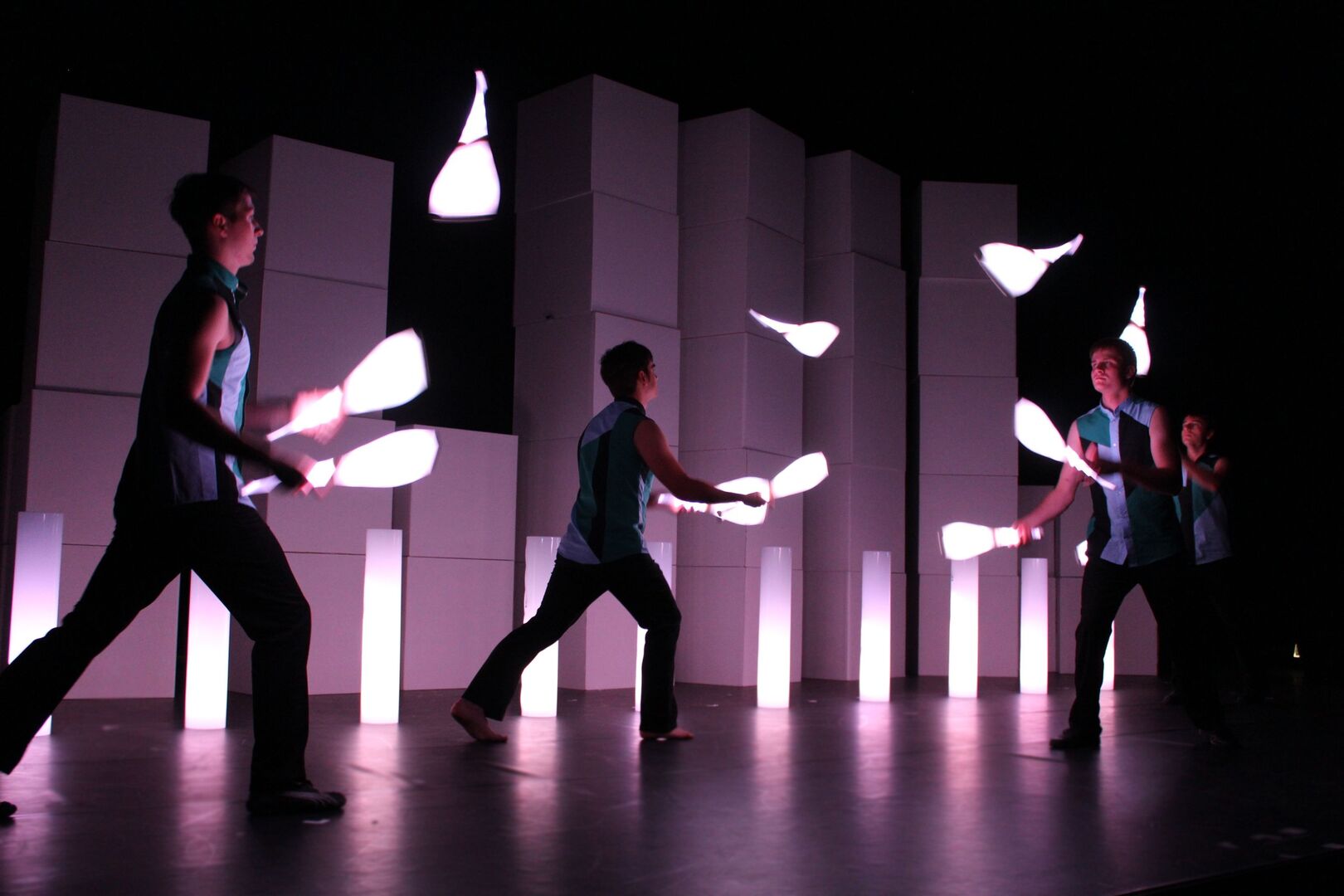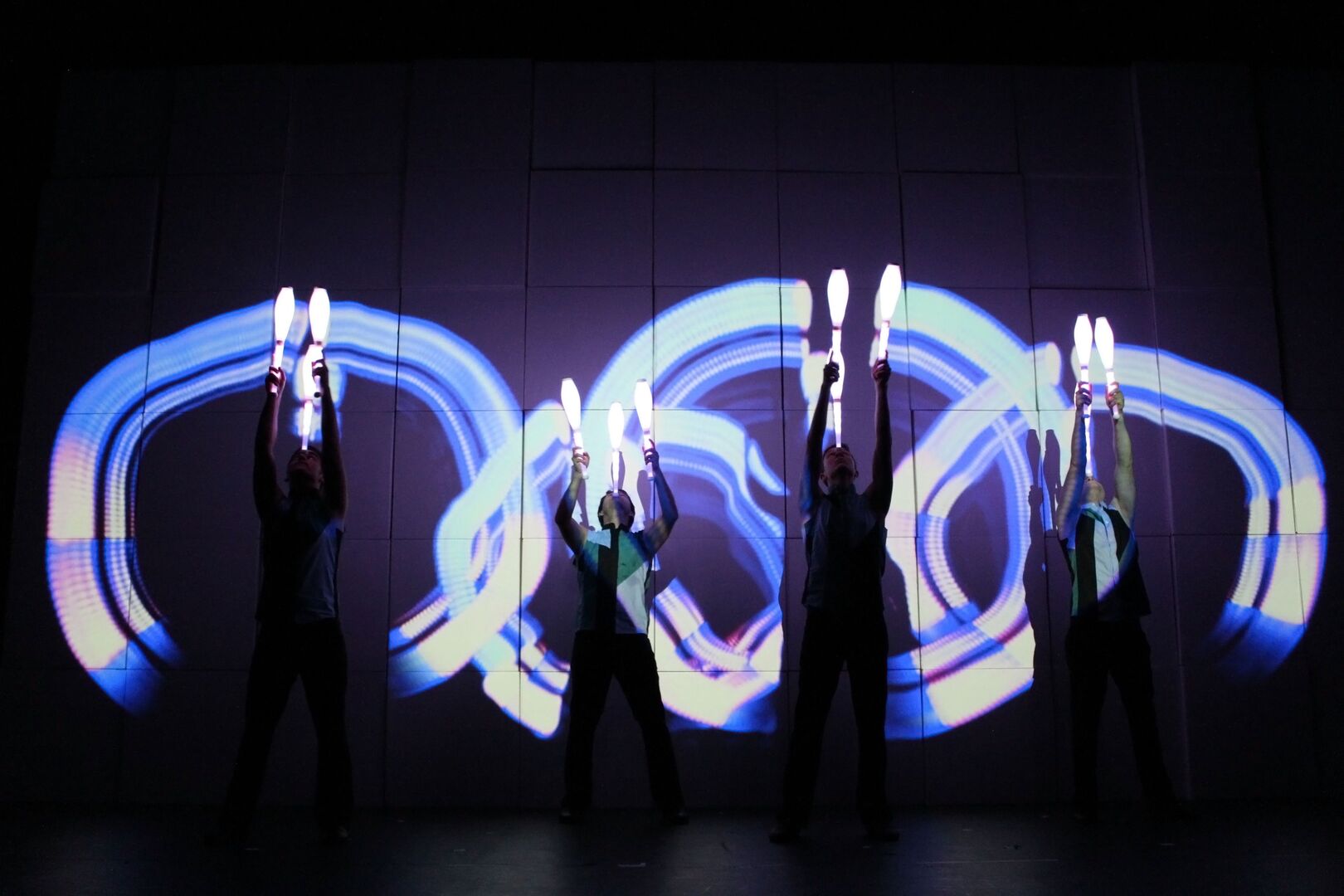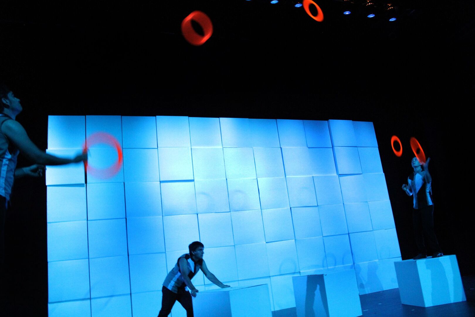 Für ihre Show haben die fingerfertigen Oberösterreicher mehr als 70 überdimensionale weiße Würfel im Einsatz, die als Projektionsboxen für Video und Licht eingesetzt werden. Die Effekte werden allesamt in Echtzeit erzeugt, d.h. die geworfene Jonglierkeule zieht sofort eine rote Leuchtspur hinter sich her, oder löst einen hypnotisierenden Kaleidoskop-Effekt aus.