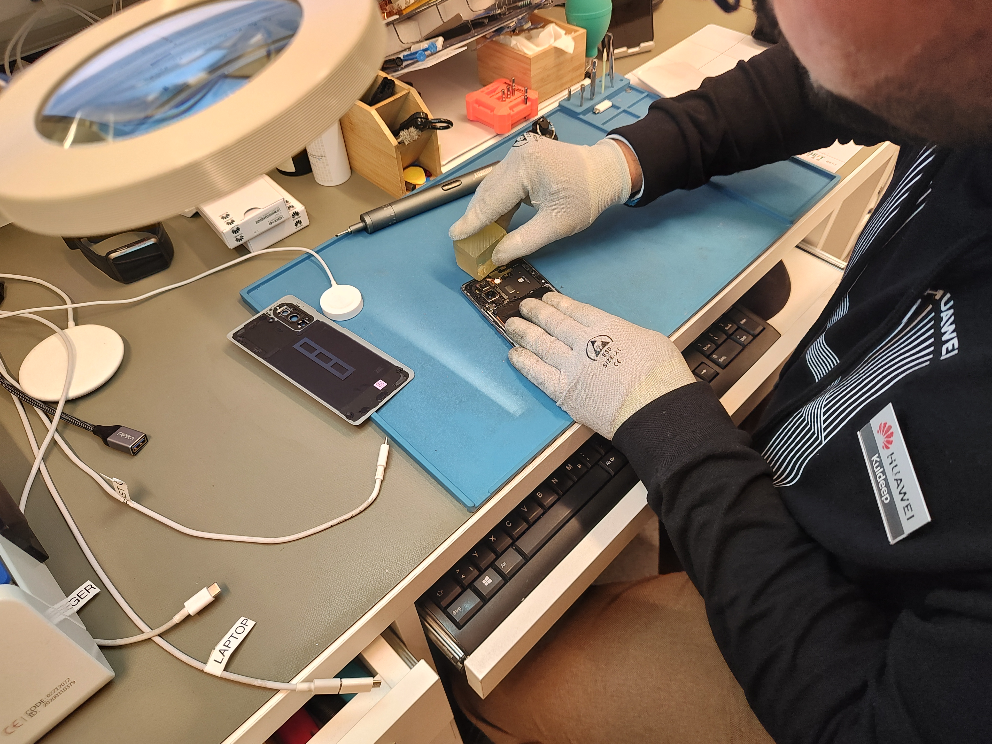 Der Huawei-Flagship-Store in der Wiener Kärntnerstraße feierte kürzlich seinen 1. Geburtstag. Neben den neuesten Huawei-Geräten wird dort auch ein Reparaturservice angeboten. Die defekten Geräte werden aber nicht, wie bei vielen anderen Herstellern, eingeschickt, sondern vor Ort repariert. Das bedeutet für den Kunden weniger Wartezeit und perfektes Service. Teilweise kann ein Gerät innerhalb weniger Stunden repariert werden und wieder mitgenommen werden. Dafür braucht es allerdings eine Logistik und erfahrene Mitarbeiter im Hintergrund und genau diesen durften wir uns ansehen. Multimedia-Redakteur Lukas Steinberger-Weiß war vor Ort und durfte, zusammen mit Huawei-Mitarbeiter Kooldeep, ein Huawei Nova 10 auseinandernehmen und wieder zusammenbauen.