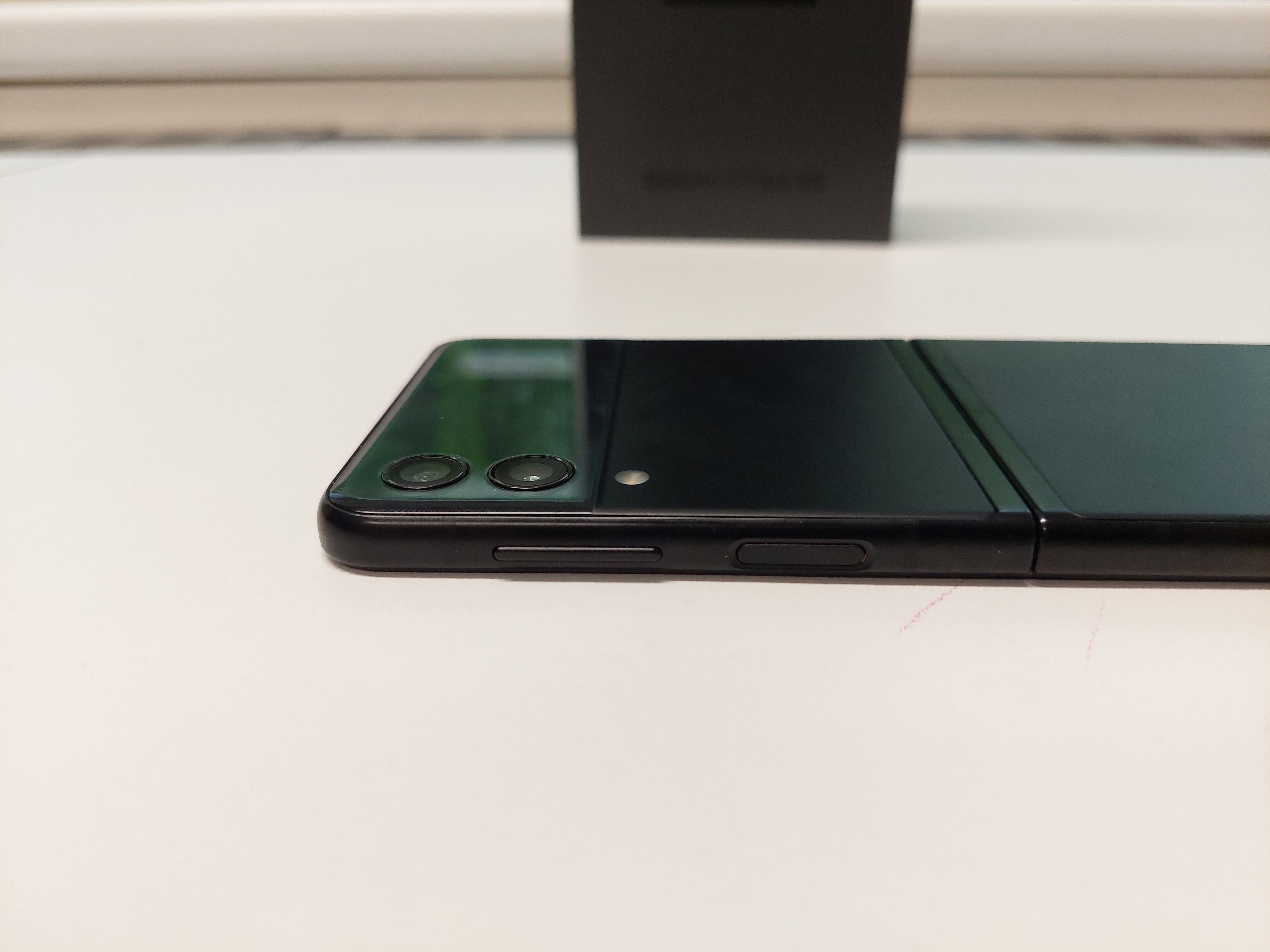 Wo viel Licht, da aber auch leider etwas Schatten. Und wie schon vor dem Test vermutet, ist der Akku die Achillesferse des Geräts. Dessen Kapazität wurde nämlich nicht angehoben und beträgt weiterhin 3.300 mAh. Das ist schon per se für so ein kraftvolles Smartphone sehr wenig und mit aktivierten 120-Hz kam ich oft nur auf eine Display-On-Time von maximal 3 Stunden. Andere Geräte mit größeren Akkus und ebenfalls 120 Hz schaffen hier teilweise schon bis zu 5 Stunden und mehr. Dieses Faktum wäre kein Problem, wenn der kleine Akku schnell wieder voll wäre. Ist er aber leider nicht. Am Kabel lädt das Z Flip 3 mit maximal 15 Watt, Wireless (Qi) mit maximal 10 Watt. Ladetechnisch ist das 2021 eigentlich Steinzeit und nicht mehr zeitgemäß. Andere Hersteller laden mit bis zu 120 Watt. Die Ladezeit für den Mini-Akku beträgt somit rund eineinhalb Stunden. Ich musste öfter am Abend zwischenladen und das ist gelinde gesagt äußerst zach! Schade. Der Fingerabdrucksensor ist seitlich angebracht und funktioniert sehr schnell und zuverlässig.