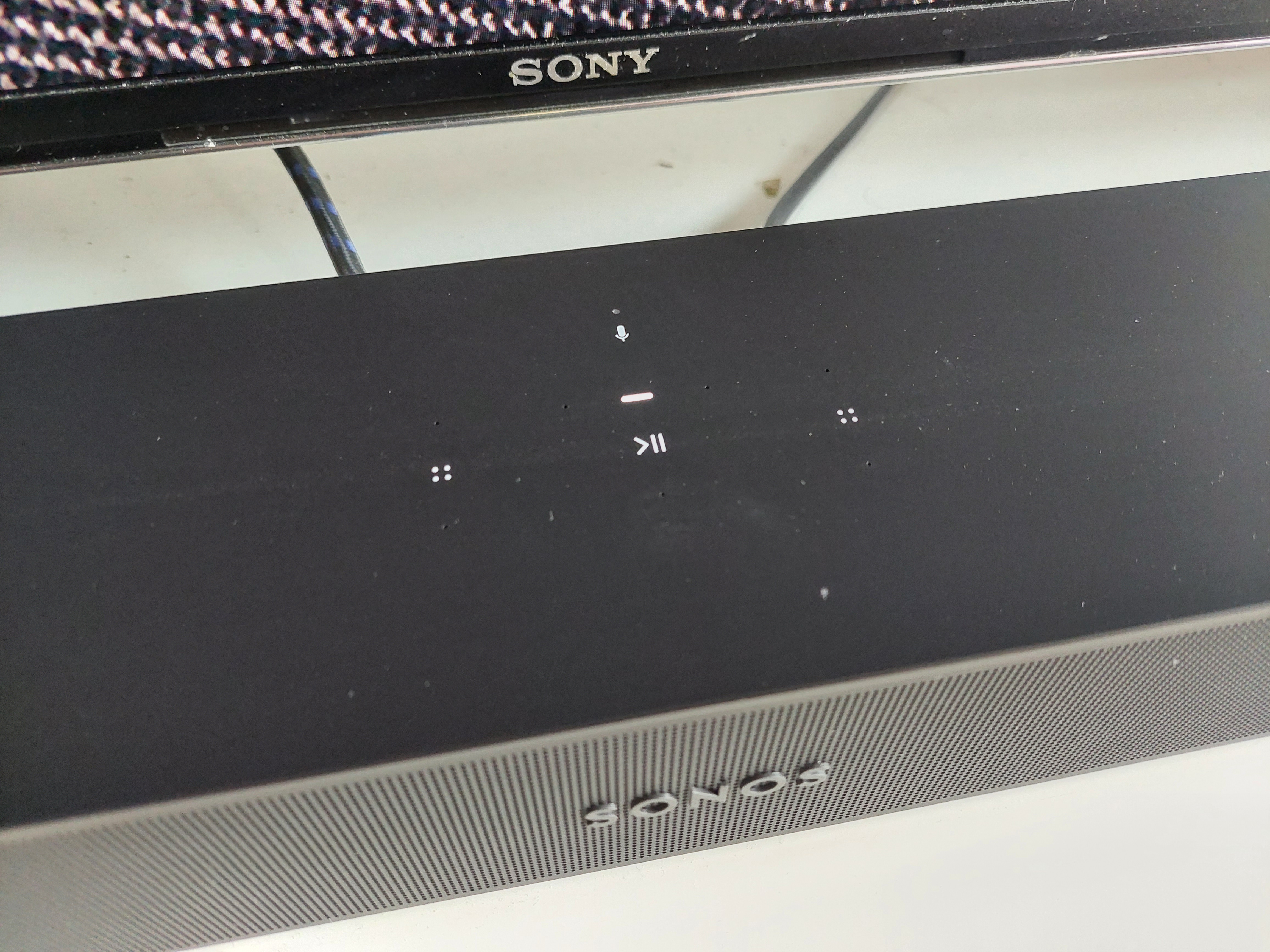 An der Oberseite der Soundbar gibt es drei Touchknöpfe. Einen für Play/Pause und zwei für Leiser/Lauter. Außerdem eine kleine LED und ein Mikrofon für die Sprachassistenten. Das wars. Auch die Assistenten und Streaming-Services werden übrigens per App eingerichtet. Und wer ein iPhone oder iPad sein eigen nennt, kann per TruePlay die Raumwiedergabe optimieren. Das geht deswegen nur über Apple-Geräte, weil diese ein einheitliches Mikrofon verbaut haben. Bei Android-Geräten wäre die Streuung zu groß und deswegen funktioniert es nicht.