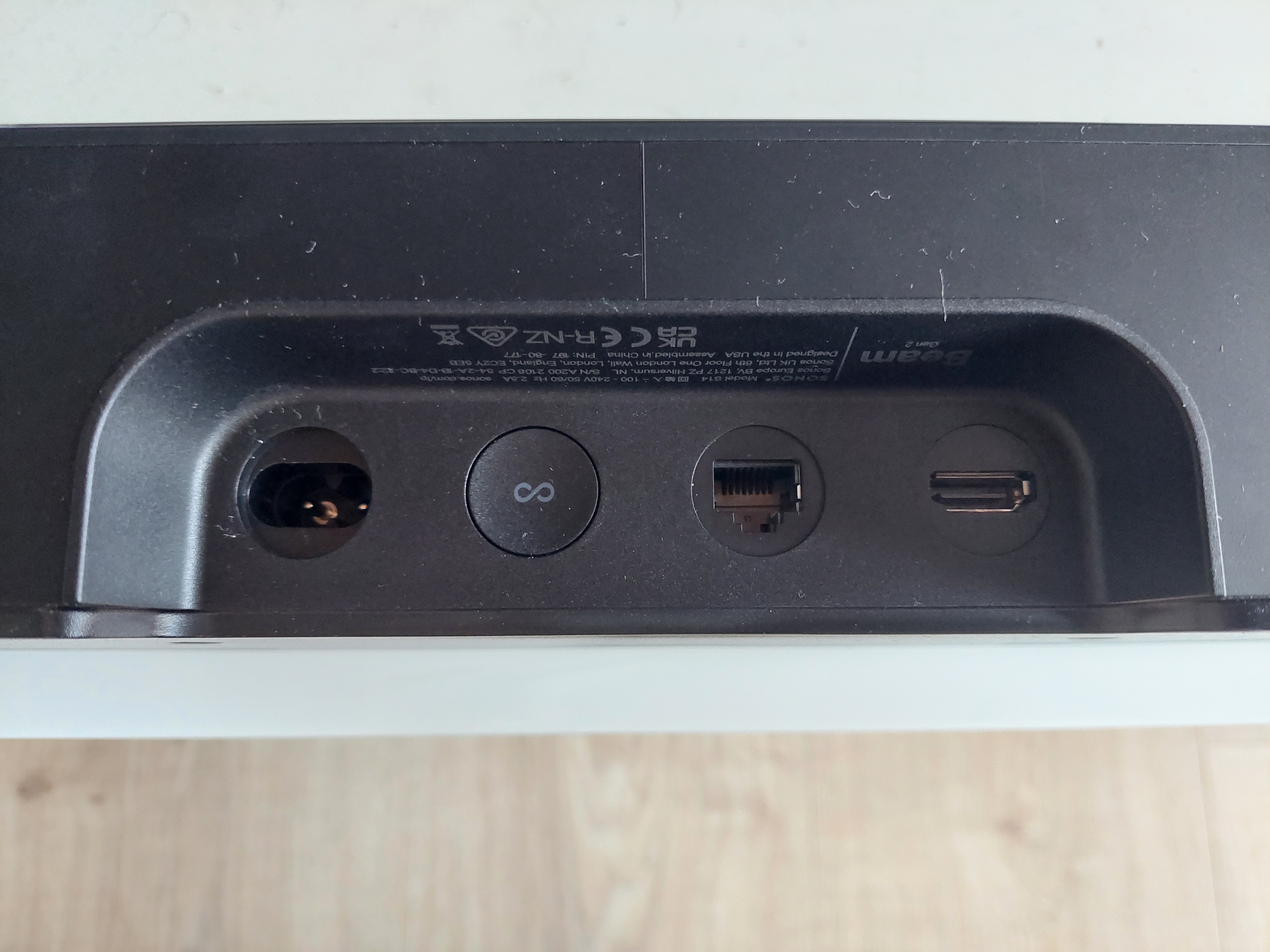 Freuen werden sich aber vor allem Freunde moderner Setups und Standards, denn technisch hat Sonos ordentlich aufgerüstet. Die Beam Gen 2 unterstützt jetzt Dolby Atmos, Dolby Digital, Dolby Digital Plus, Dolby TrueHD - die erste Generation nur Dolby Digital. Ja DTS fehlt zwar noch immer, aber ich hatte mit DTS keine Probleme. Spannend ist auch der neue HDMI-Anschluss, der kann jetzt nämlich endlich eARC und ist damit auch in der Zukunft angekommen. Wer lieber optisch verbindet kann auch diesen Anschluss nehmen (per beigelegtem Adapter), dann allerdings ohne Atmos, das geht nur über den digitalen HDMI Anschluss. Verbunden wird die Beam Gen 2 über W-LAN oder LAN. Als Sprachassistenten finden sich Amazon Alexa und der Google Assistant. Streaming Services: Apple AirPlay 2, Amazon Music, Deezer, Pandora, Spotify. Die Beam kommt mit allem klar.