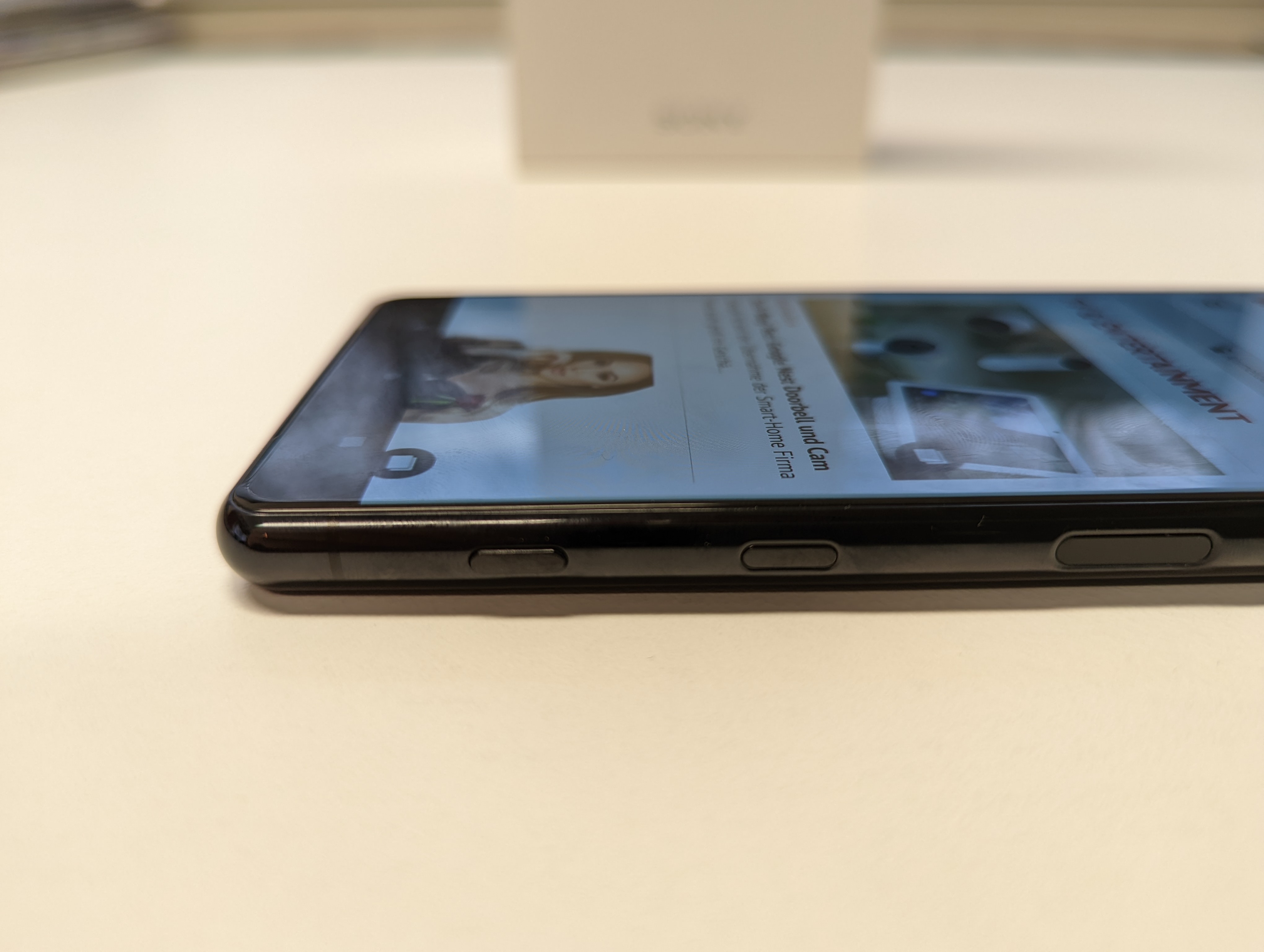 Das Design der Sony-Geräte ist stark industriell, klare Linien, wenig Schnörkel, aber gerade deswegen hat es Charme. Das Gerät hat keine Punchhole, sondern minimale Displayränder unten und oben. Die beherbergen nicht nur eine Selfie-Cam, sondern auch die Dual-Lautsprecher. Diese strahlen nach vorne ab und bringen daher wirklich guten Klang mit sich. Der Kamerabuckel auf der Rückseite ist dezent und auch der Seitenrahmen ist alles andere als aufdringlich. Etwas viel Knöpfe (Laut/Leiser, Power-Button, Google-Assistant-Knopf und Kamerabutton) und die alle auf einer Seite. Da erwischt man schon mal den falschen. Positiv ist, dass der schnelle und meist funktionierende Fingerabdrucksensor im Power Button integriert ist. Das Xperia 5 III ist eines der kompaktesten Android-Geräte, dank 21:9-Format des Display ist es eher länglich als breit. Es liegt sehr gut in der Hand und ist für all jene, die keinen Riesenklopper in der Hand halten wollen eine Wohltat.