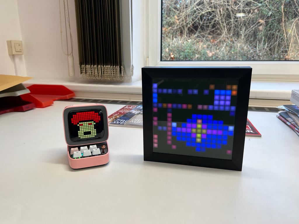 Bling, Bling! So lassen sich die Produkte von Divoom wohl am besten beschreiben. Dank Pixel-Art Bildschirm, lassen sich alle möglichen Motive auf die kleinen Gadgets projizieren. Schaltzentrale ist die Divoom-App. Aber der Ditoo dient auch als sehr guter und kompakter Lautsprecher (Bluetooth) mit einer Tastatur. Und der Pixo ist mehr als ein Bilderrahmen, er kann z.B. auch Benachrichtigungen vom Smartphone zeigen. Beide Geräte sind wirklich coole Gadgets.