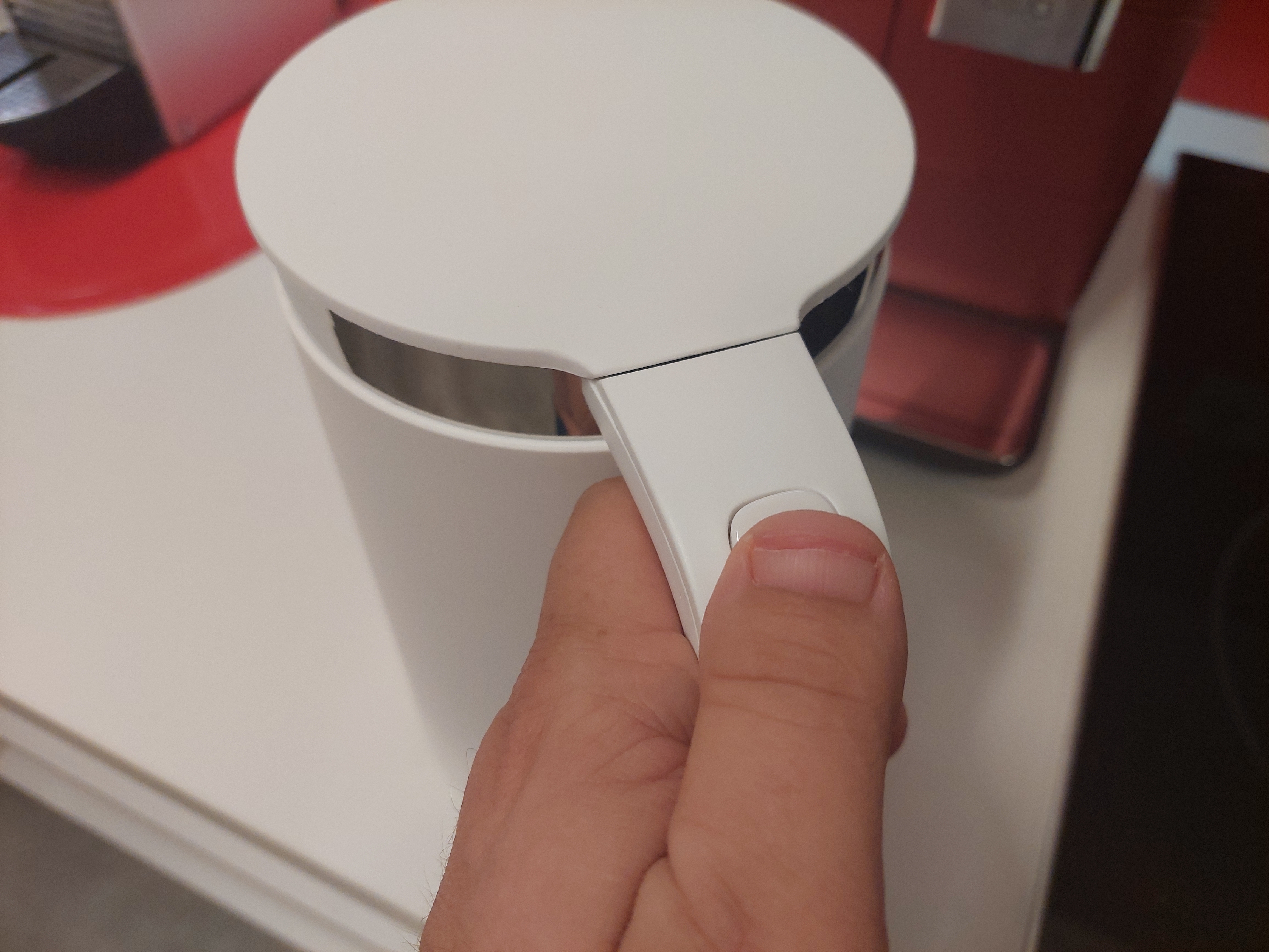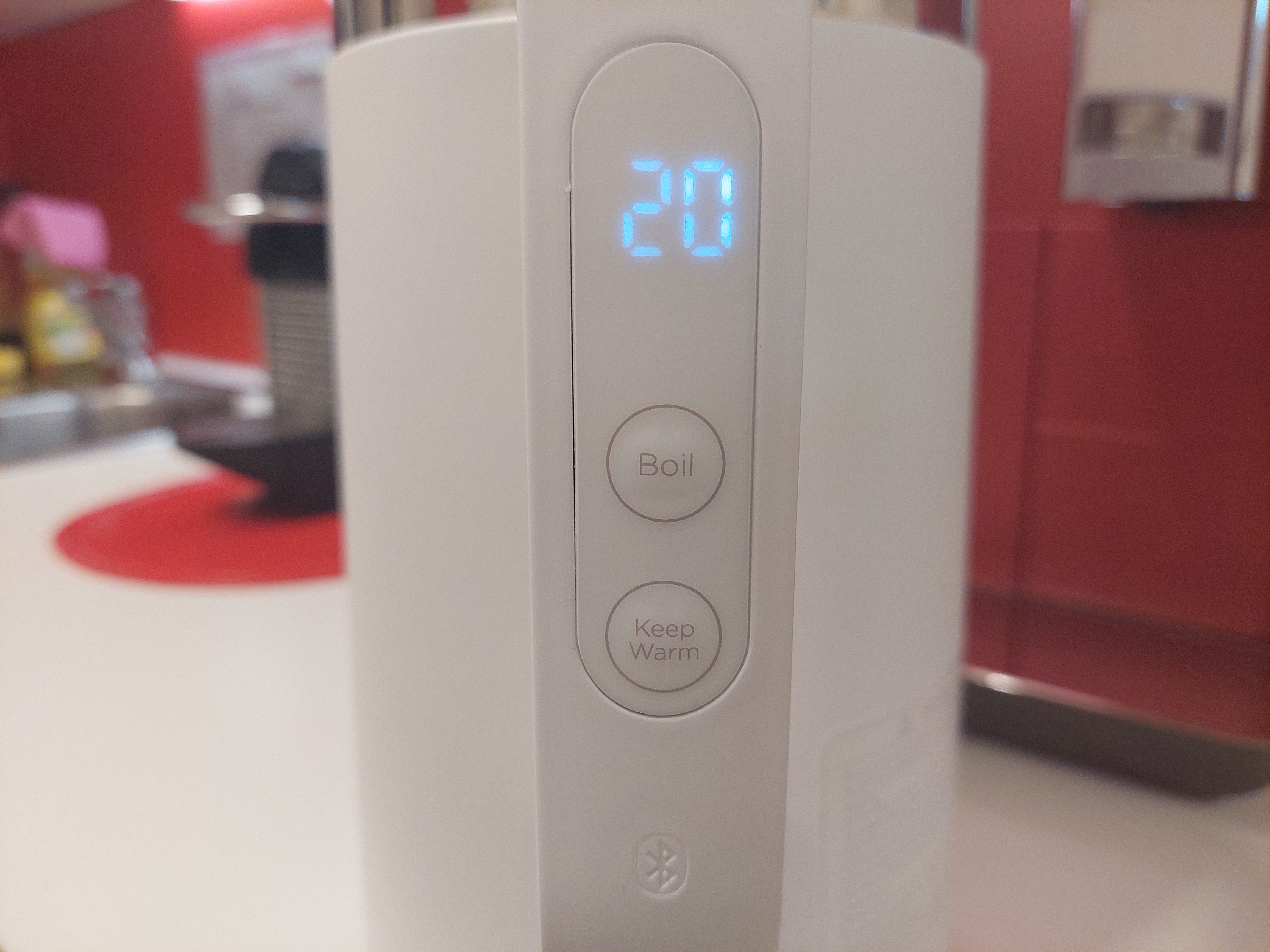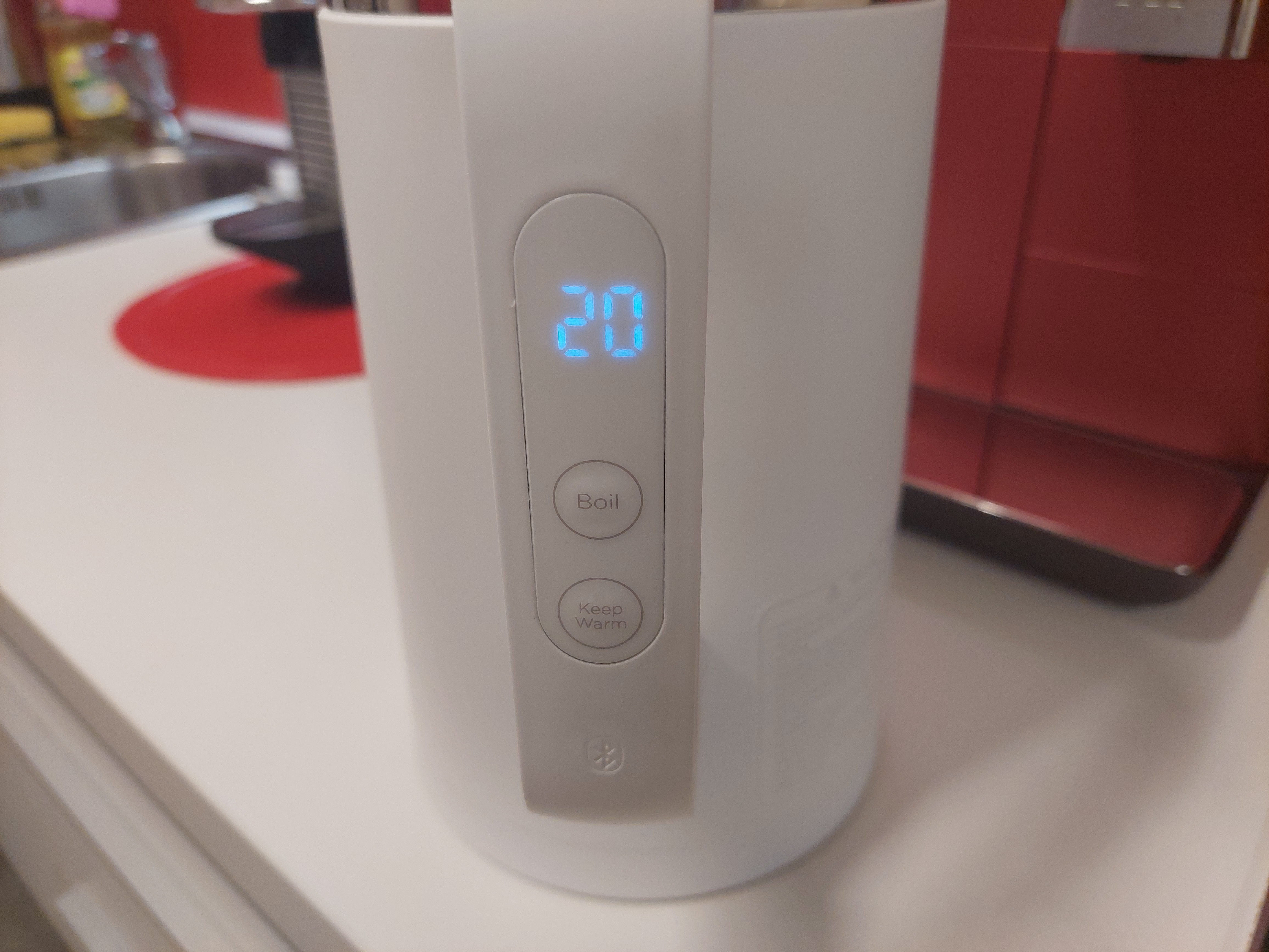 Die Anzeige am Henkel des Geräts dient als zusätzliche Info der Temperatur, sehr minimalistisch sind die Knöpfe "Boil" (Aufheizen) und "Keep Warm" (Warmhalten). Wer das Gerät komplett ohne App benutzen will braucht auch nicht mehr. Die Verarbeitung des smarten Wasserkochers ist extrem hochwertig, die Heizspulen liegen nicht frei im Wasser, all das wäre bei einem Preis um die 45 Euro nicht unbedingt erwartbar. Auch die Verbindung mit der App klappte problemlos.