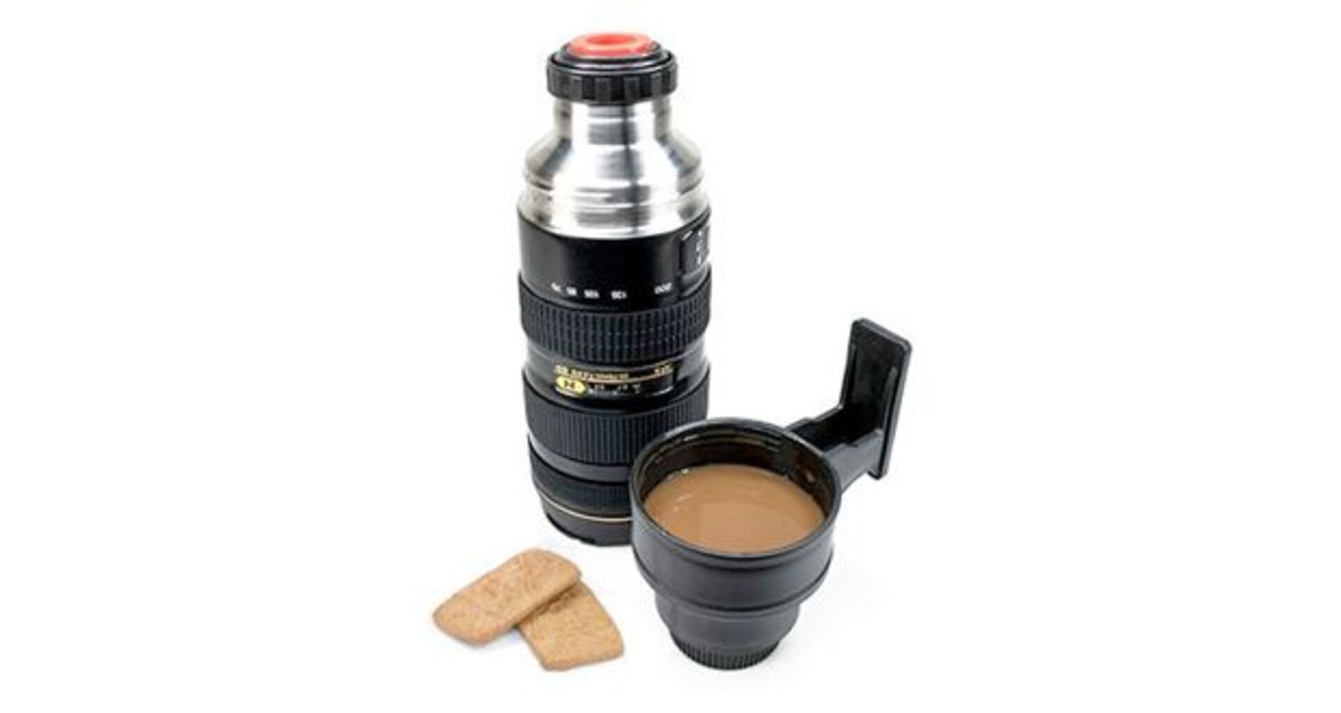 Wer seinen Tee oder Kaffe in dieser Thermoskanne in die Arbeit mitbringt, führt seine Kollegen in die Irre: Auf den ersten Blick sieht sie nämlich aus wie ein Kamera-Objektiv. Damit eignet diese Thermoskanne nicht nur zum Warmhalten von Getränken, sondern ist zugleich eine stylische Schreibtisch-Deko. Gesehen um 39,95 Euro