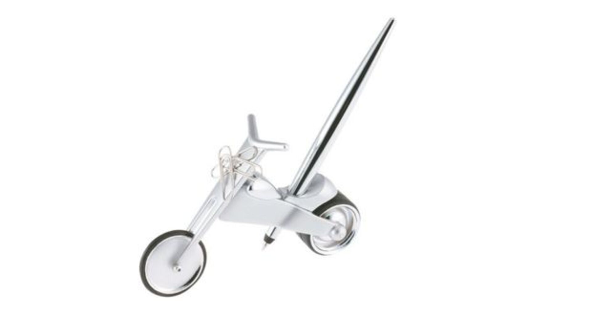 Dieser Motorrad-Stifthalter ist nicht nur was für Motor-Begeisterte. Durch sein puristisches Design verleiht er jedem Männer-Schreibtisch Stil. Gesehen um 19,50 Euro