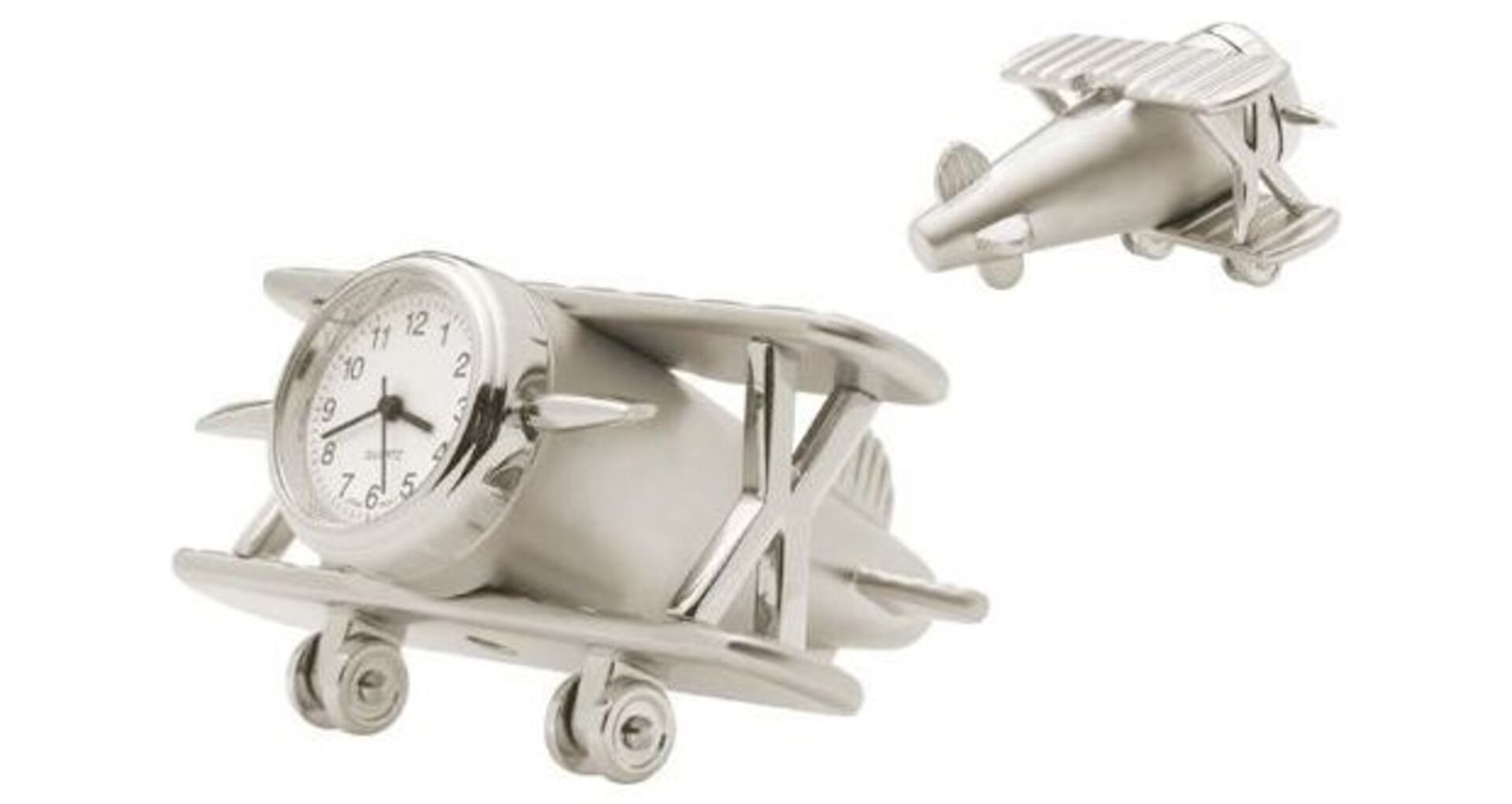 Ein Blickfang für den Schreibtisch und ein Musthave für Flugzeug-Fans. Diese Doppeldecker-Tischuhr aus Metall. Gesehen um 36,98 Euro