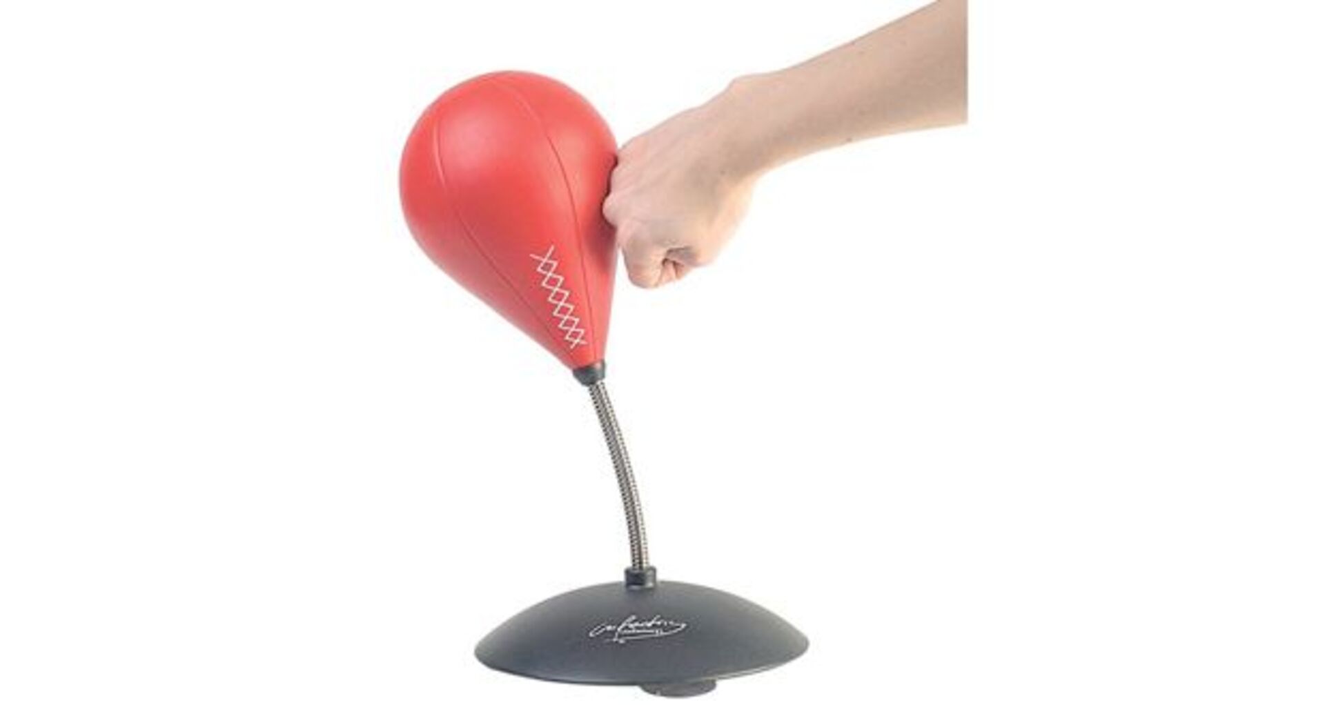 Wird der Arbeitstag zu stressig, können Sie mit diesem Punchingball Aggressionen abbauen. Verpassen Sie dem Ball einfach einige kräftige Haken – und schon sinkt der Stress! Gesehen um 20,90 Euro