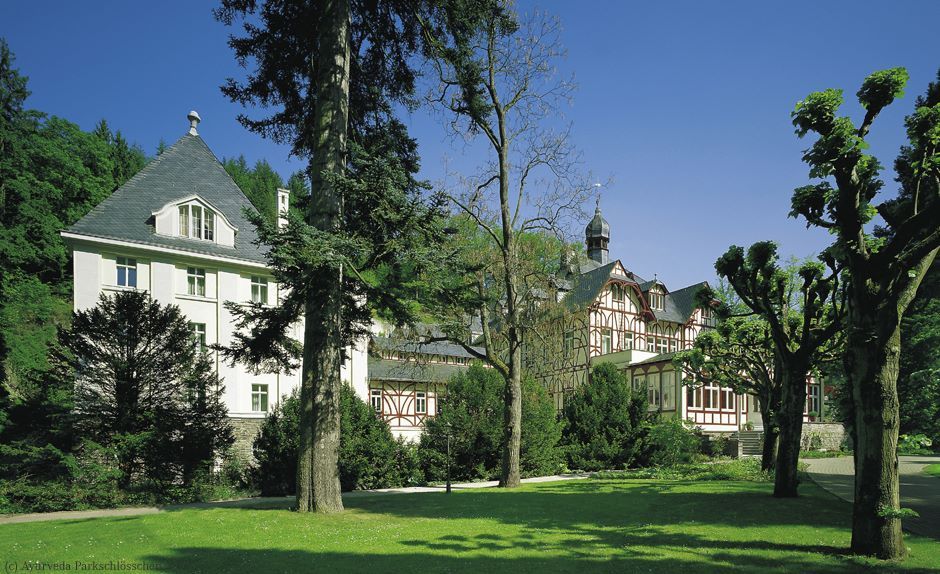 Iris Berben und die Grimaldis gehören zu den Stammgästen des Parkschlösschens. Die romantische Wellness-Oase ist rund eine Stunde von Frankfurt (Main) entfernt und bietet ein ganzheitliches Ayurveda-Konzept: Der Spa misst 2.000 Quadratmeter und beinhaltet Schwimmbad, mehrere Saunen, Fitness-Studio und Kosmetiksalon. Die Kost in diesem fünf-Sterne-Ayurveda-Hotel ist rein vegetarisch, die 60 Zimmer des Hauses wurden von angeblich schädlichen Einflüssen befreit, indem Elektro-Kabel doppelt ummantelt und Wasseradern mit Marmor abgeschirmt wurden. Vier Ärzte mit schulmedizinischer und ayurvedischer Ausbildung sowie zahlreiche Ayurveda-Therapeuten betreuen die Gäste. Die zweiwöchige Panchakarma-Therapie ist die Spezialität des Parkschlösschen und zugleich das beliebteste Programm. 2013 wurde das Hotel mit dem World Spa & Wellness Award in der Kategorie "Destination Spa of the Year – Europe" ausgezeichnet.