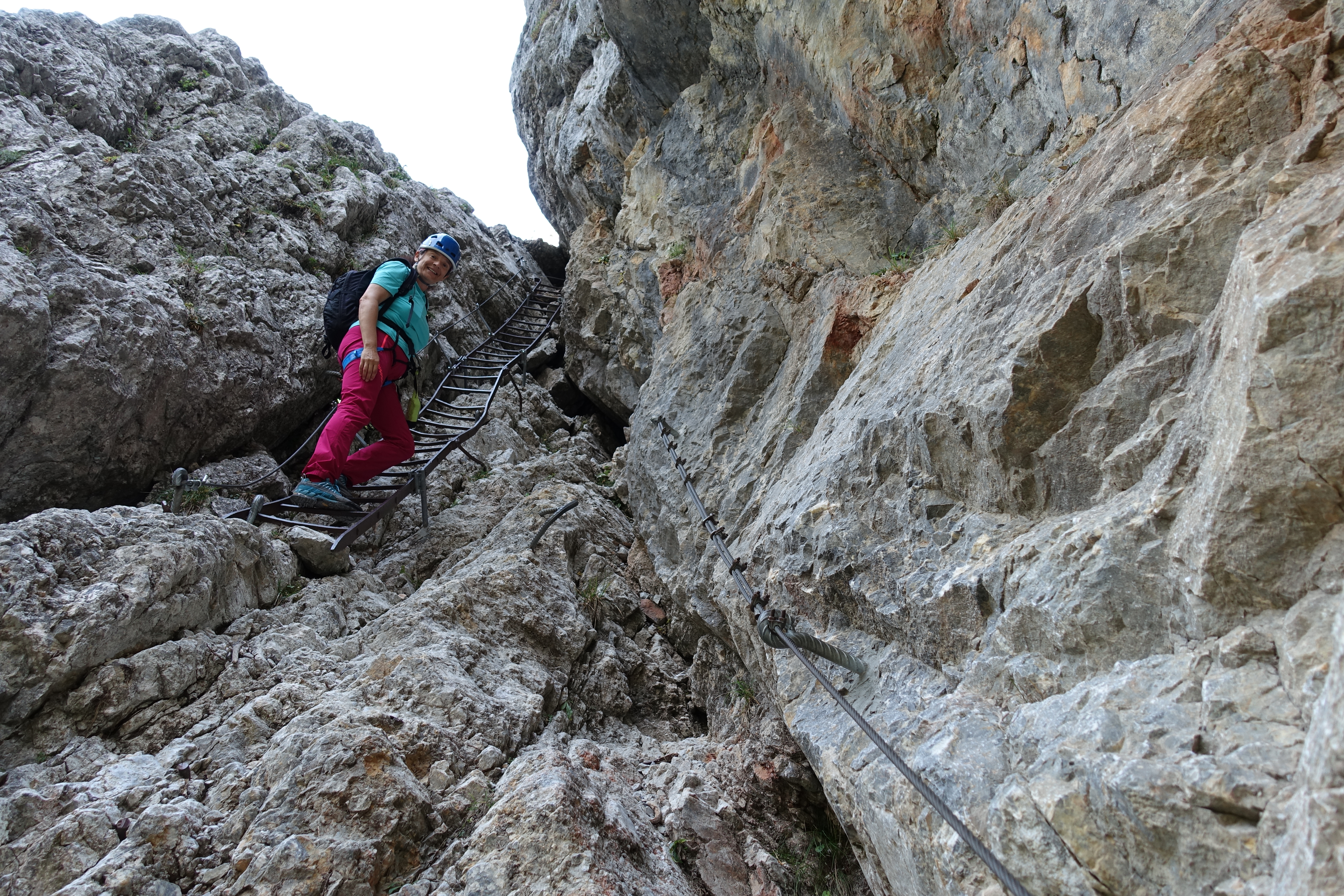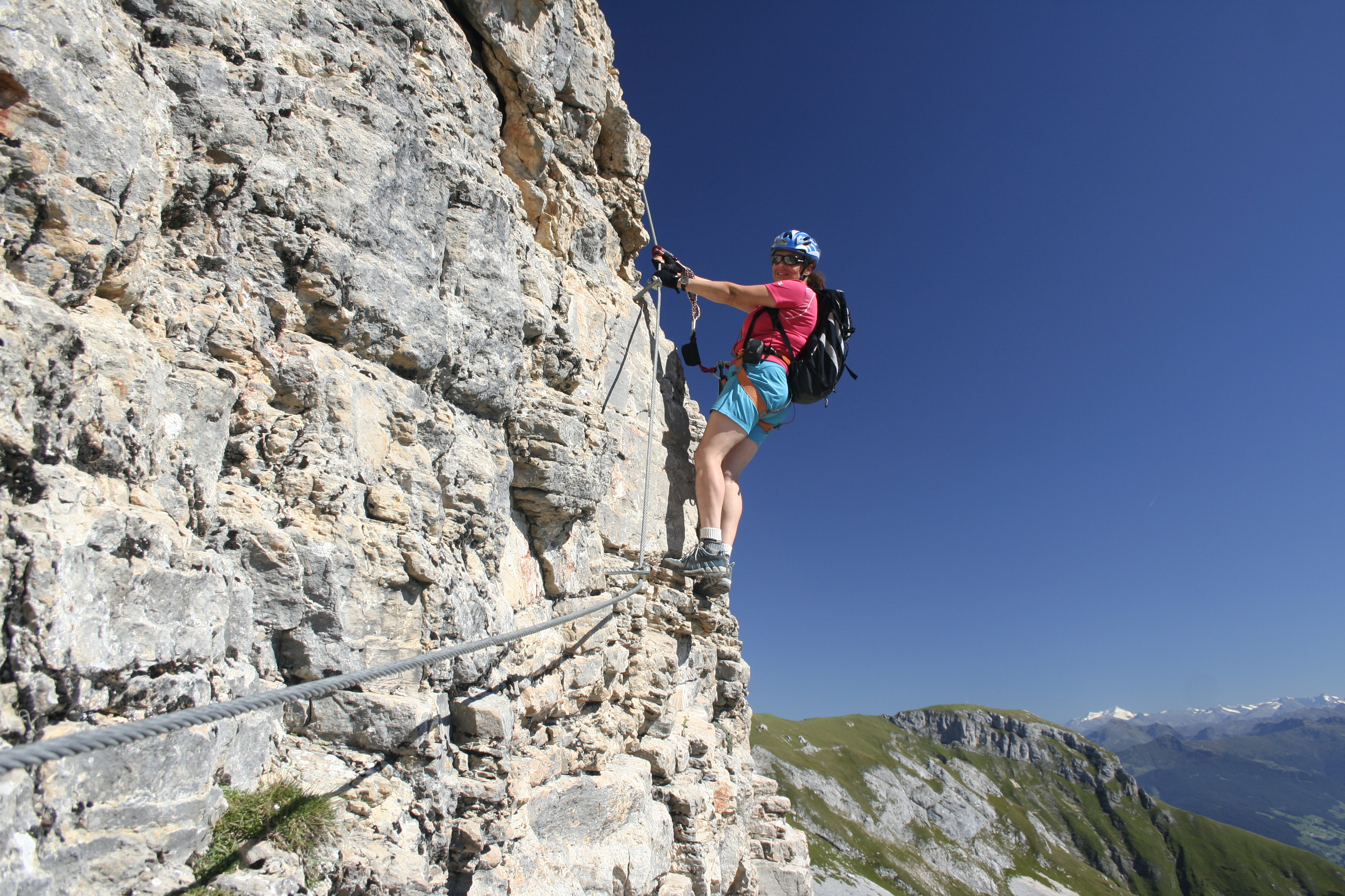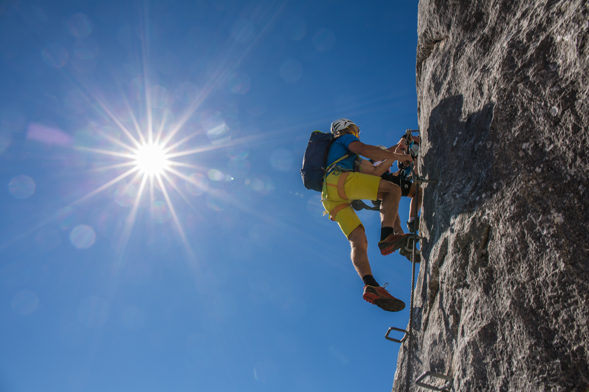 Er macht seinem Namen alle Ehre! Ob man ihn nun als einen langen oder als fünf kurze Klettersteige betrachtet – eins ist sicher: Diese Tour im Rofan am Achensee ist wohl einer der wenigen Eisenwege, die sich für Anfänger, Fortgeschrittene und Profis gleichermaßen eignen. Los geht es mit der Haidachstellwand. Der Schwierigkeitsgrad von A/B wird an kurzen Stellen von C unterbrochen. Der zweite Gipfel ist der Rosskopf. Dieser überwindet einige D-Stellen, kann aber südseitig umgangen werden. Nun folgt die Seekarlspitze. Nach einer luftigen Querung, die etwas Mut und Geschick erfordert, geht es eine sehr steile Wand nach oben zum Gipfel. Zum Sperljoch führt ein leichter Steig. Alternativ geht es auf die Hochiss – mit Schwierigkeit C/D nur für geübtere Klettersteiggeher.