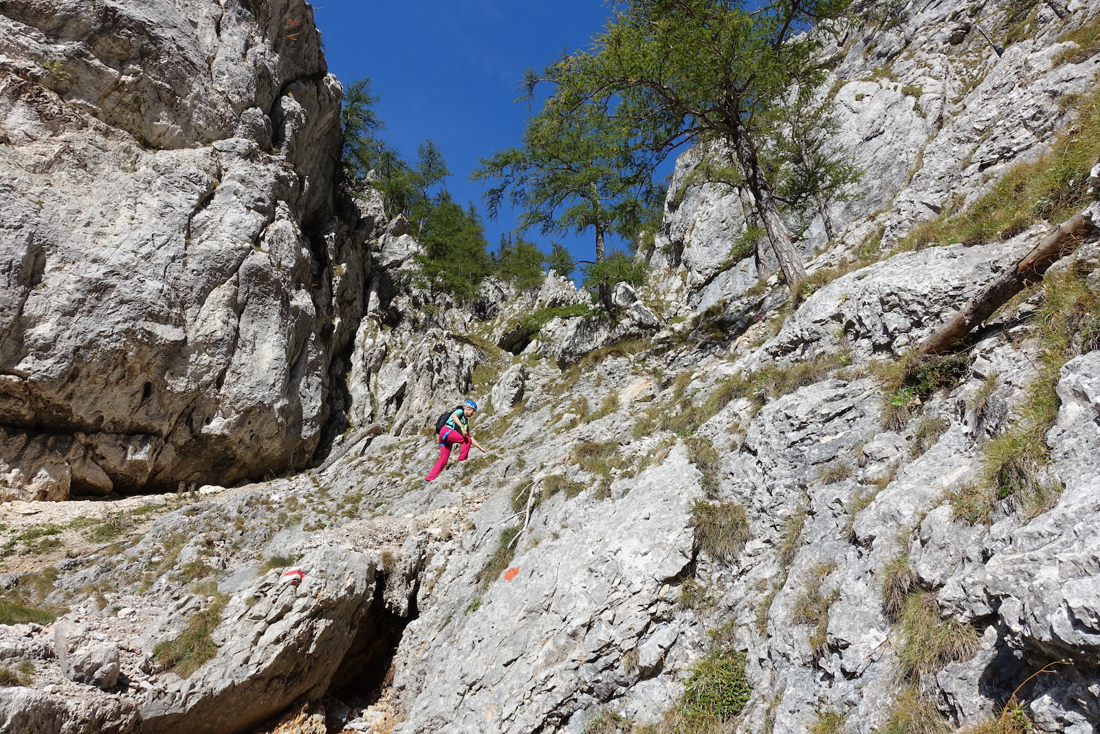 Die Halbtagstour bietet eine Kombination aus historischer Steiganlage und alpin angehauchtem Wegverlauf im Großen Höllental auf der Rax. Und auch wenn die Klettersteig-Schwierigkeiten relativ gering sind (Schwierigkeit B), so ist die Umgebung doch alpin (Vorsicht, Steinschlag!). Auch der Abstieg über den gesicherten, teils recht steilen Wachthüttlkammsteig (Schwierigkeit A-B) mit seinen rund 30 Leitern darf nicht unterschätzt werden.