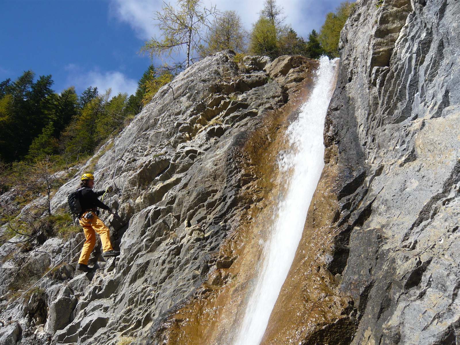 Der gut für Anfänger geeignete Klettersteig (schwierigkeit B/C) ist Teil der "Abenteuer- und Walderlebniswelt Lesachtal". Man klettert dabei am Stahlseil entlang mehrerer schöner Wasserfälle – ein großartiges Erlebnis, das ohne große Schwierigkeiten auskommt. Wer mehr will, kann eine D-Variante wählen. Tipp: Gerade im Sommer erfrischt die Gischt herrlich.