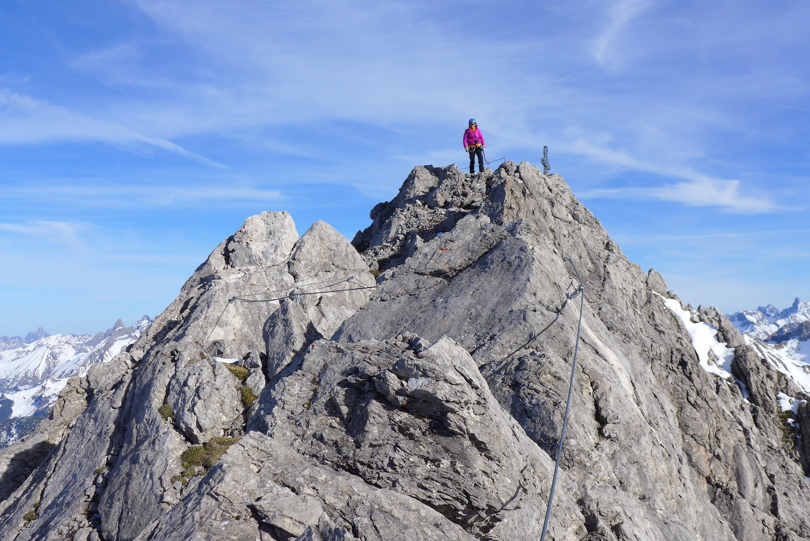 Der Karhorn Klettersteig Ostgrat führt im Schwierigkeitsgrad B und C vom Wartherhornsattel zum Gipfel und ist ein toller Einstiegsklettersteig. Vom Gipfel führt der Abstieg über den Normalweg an der Südseite hinunter. Fortgeschrittene Kletterer kommen ab dem Gipfel in den Genuss des "Panoramaklettersteigs Karhorn Westgrat" (Schwierigkeit C/D).