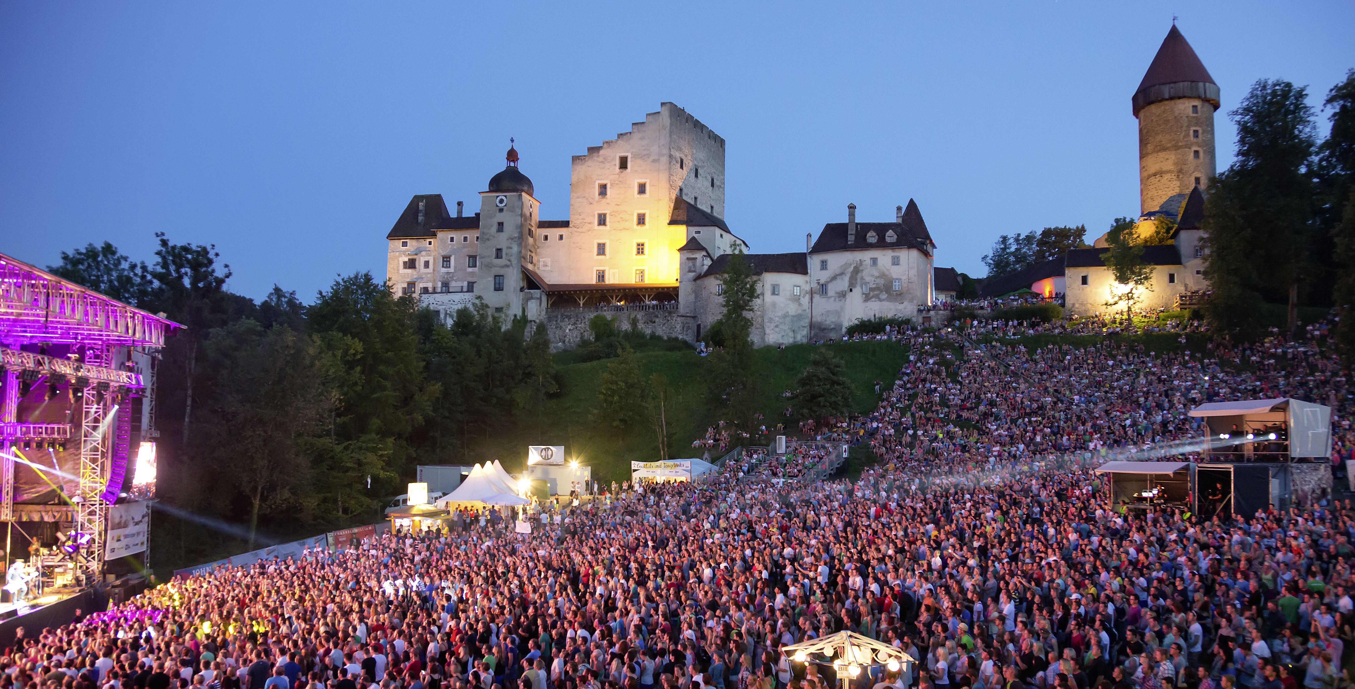 Rechts von der Bühne die Burgschenke, links thront auf einer Anhöhe die fast 1.000 Jahre alte Felsenburg, dazwischen finden tausende Zuseher Platz: Auf dem Gelände der Burg Clam im oberösterreichischen Mühlviertel sind schon Elton John, Sting, ZZ Top und Toto aufgetreten, alle heimischen Stars sowieso. Was eine besondere Freiluft-Bühne ausmacht? Sie schafft den Spagat aus großer Kulisse und intimer Atmosphäre.