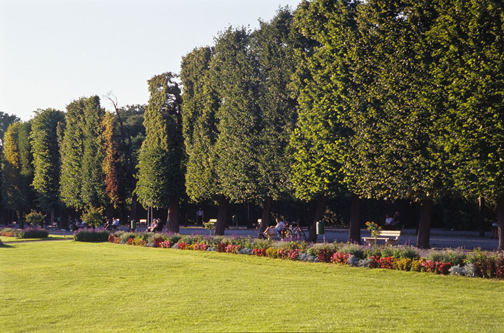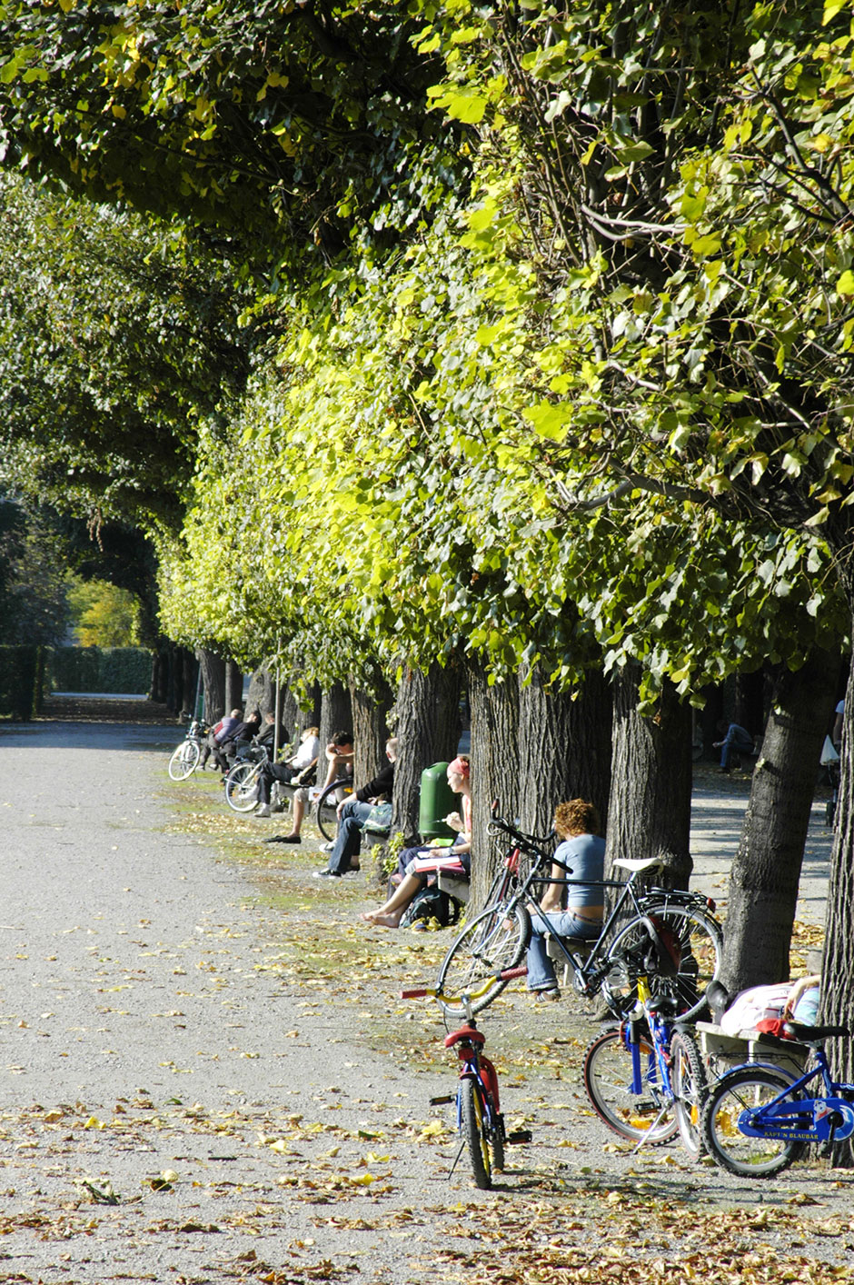In dem 52,2 Hektar großen Park herrscht ein friedliches Mit- und Nebeneinander von Fußgängern und Radfahrern. Die Wege sind breit und lang -…