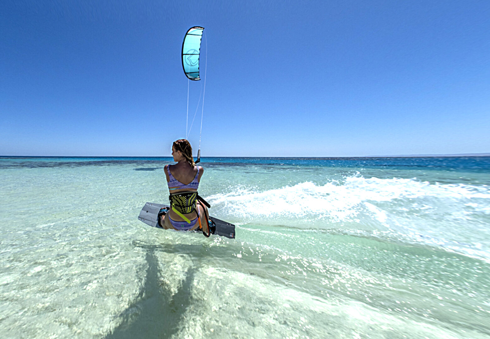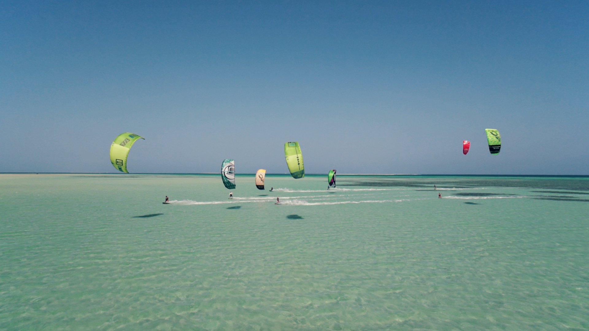 Über die Flughäfen Hurghada und Marsa Alma (ab Juni) geht es an den Streifen Land zwischen Wüste und Wasser: „Wir sind fernab vom Massentourismus. Jeder, der bei uns ankommt, vergisst die Zeit, Stress und Hektik“, sagt Klaus Schweighofer, der mit einem österreichischen Team den Kitespot betreibt. Zwei Gehminuten entfernt liegt das Hotel. „Vom Bett aufs Brett, einfacher geht’s nicht“, so Schweighofer. Top: das kilometerlange, hüfttiefe, türkise Wasser mit sandigem Untergrund.