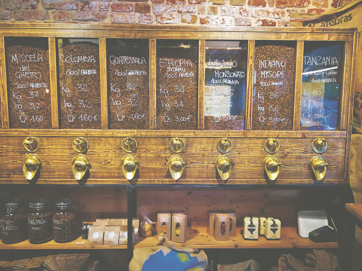 Der verführerische Duft nach gerösteten Kaffeebohnen lockt schon von Weitem. Acht von Hand geröstete exklusive Haussorten mit klangvollen Namen wie Miscela del Ghetto oder Indiano Monsonato Malabar stehen als Take-away ab 250 Gramm zur Disposition. Alle Röstungen, auf Wunsch auch mit pflanzlichen Milch- alternativen, sowie vegane Kuchen kann man aber auch in heimeliger Atmosphäre direkt vor Ort genießen. Adresse: Fondamenta dei Ormesini 2804 Cannaregio