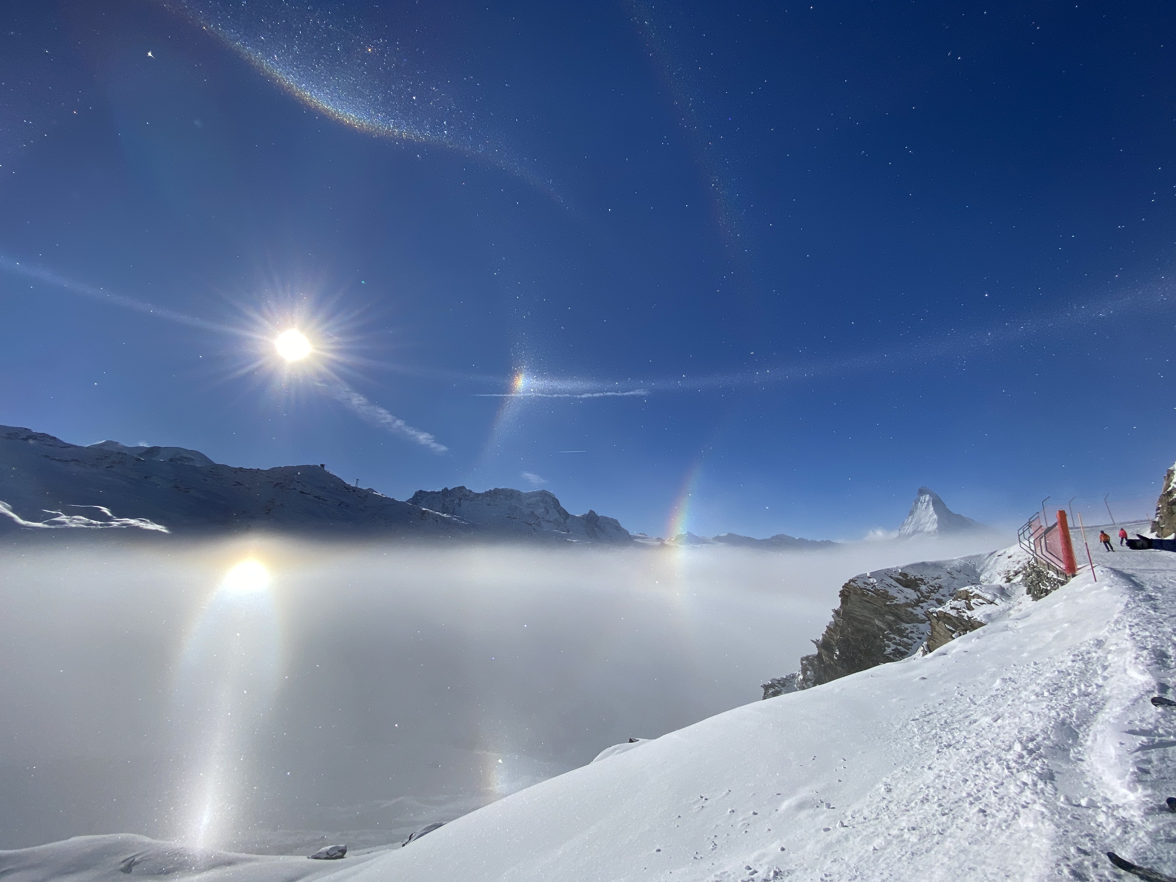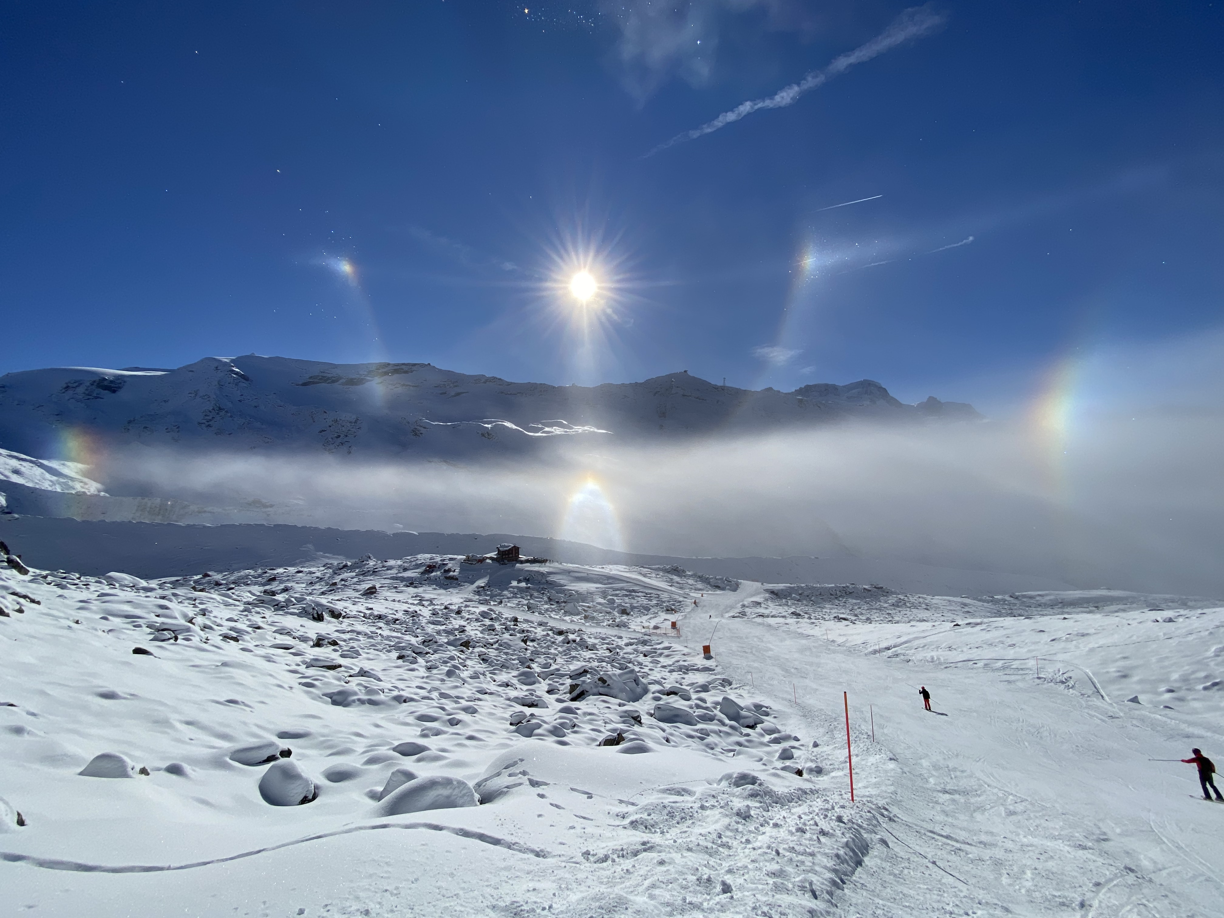 Ist der Kreislauf wieder stabil, steht dem Pistenvergnügen nichts mehr im Wege. Selbst Mitte Dezember kann man seine Schwünge beinahe ganz privat ziehen. Das Skigebiet ist riesig, die Möglichkeiten sind nahezu unendlich. Wer mit Kids anreist, steht früher oder später an der Standseilbahn Sunnegga, die einen durch Felsentunnel ins Familienskigebiet bringt. Auch der Gipfel des Gornergrat lockt.