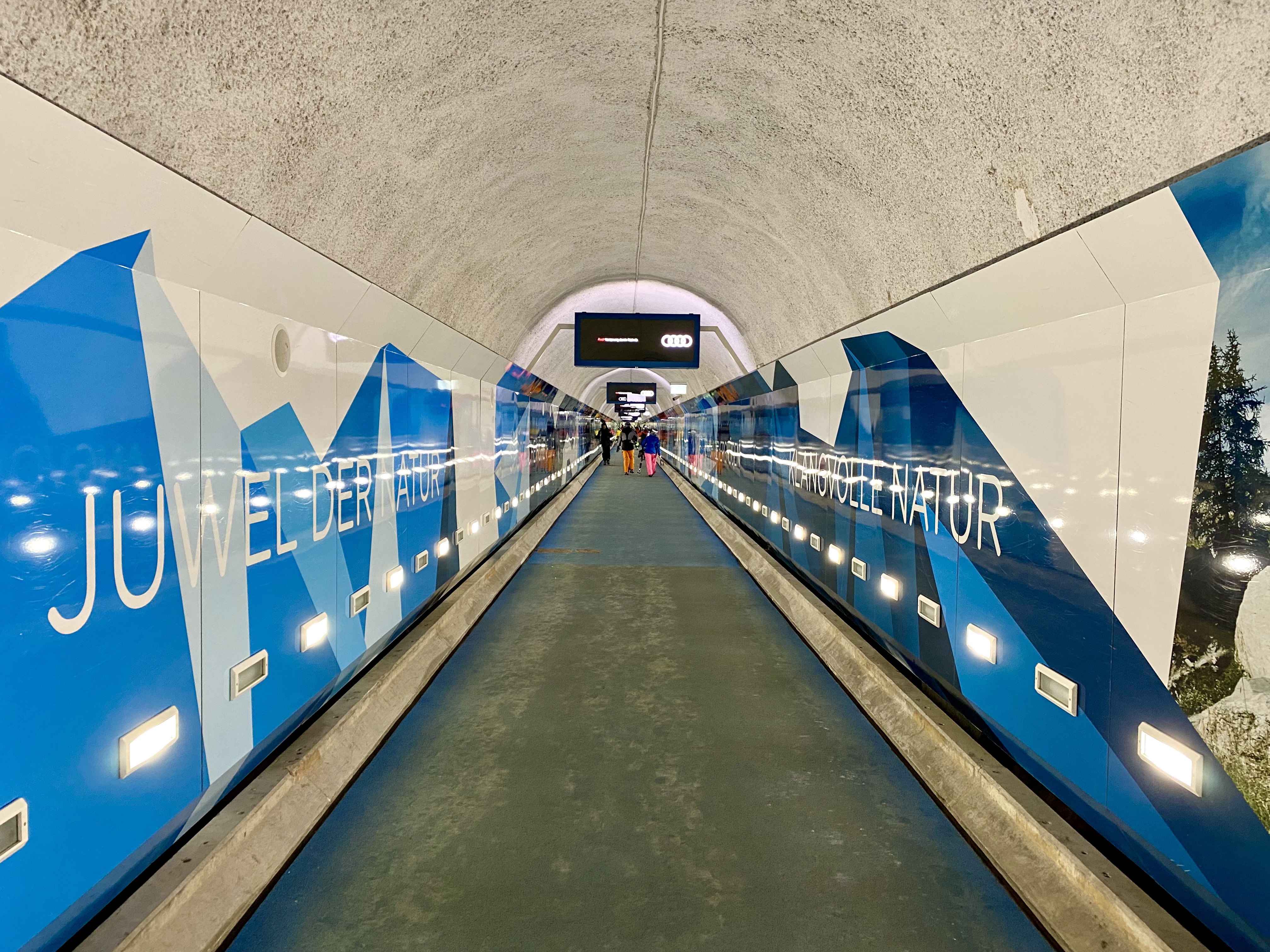 Zuerst zum Skiverleih! Ausgestattet mit einem 10-Prozent-Voucher, den einem der freundliche Concierge reicht, ist man gleich bei den Ausrüstern. Hier gibt ein Vorgeschmack auf das kommende, schnelle Vergnügen. In nur wenigen Minuten ist man pisten-fertig. Zu Fuß kurz drauf bereits direkt vor der Gondel des „Glacier ParADISE“. Eine echte Bestzeit! Und eine flotte Fahrt später, auf der mit 3883 Meter Seehöhe höchsten Bergstation Europas. Der schnelle Aufstieg ist spektakulär und gleicht einem Drohnenflug über die Alpen. Am kleinen Matterhorn angekommen, raubt es vielen erst einmal den Atem. Und das nicht nur wegen des grandiosen Panoramas. Selbst für bergerprobte Österreicher ist die Höhe gewöhnungsbedürftig!
