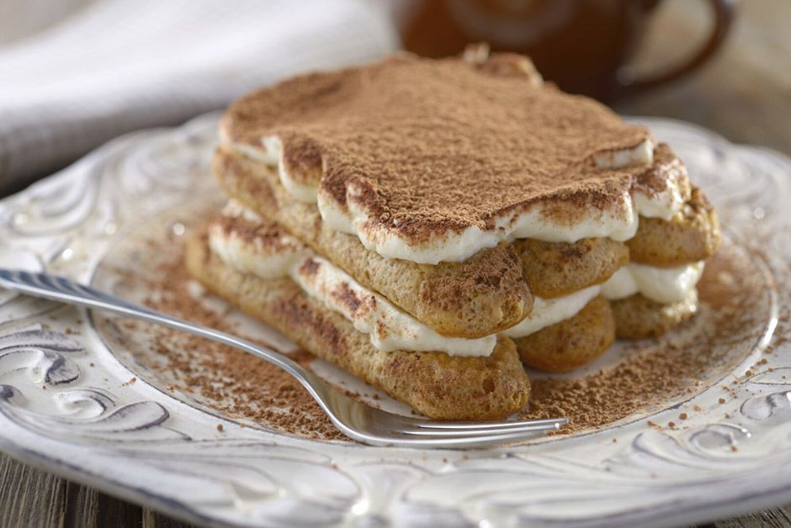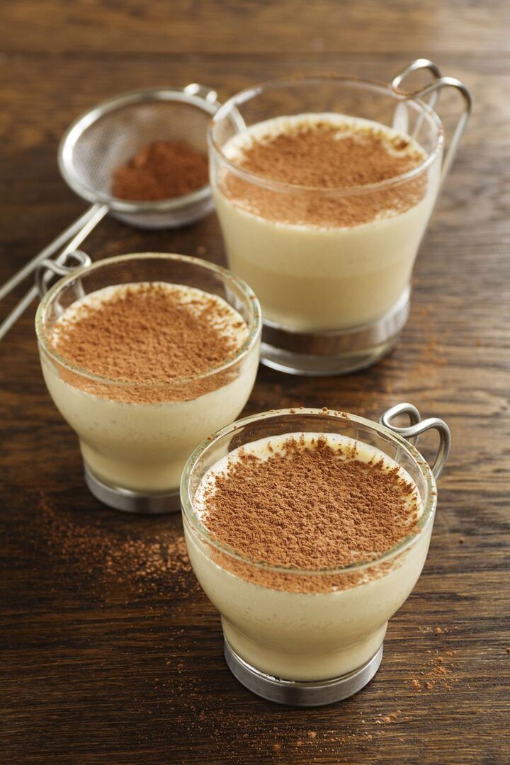 Die Maroni-Masse wird abwechselnd mit in Kaffee getränkten Biskotten in eine Form eingeschichtet und über Nacht kalt gestellt. Köstliche Alternative zum klassischen Eis-Dessert.